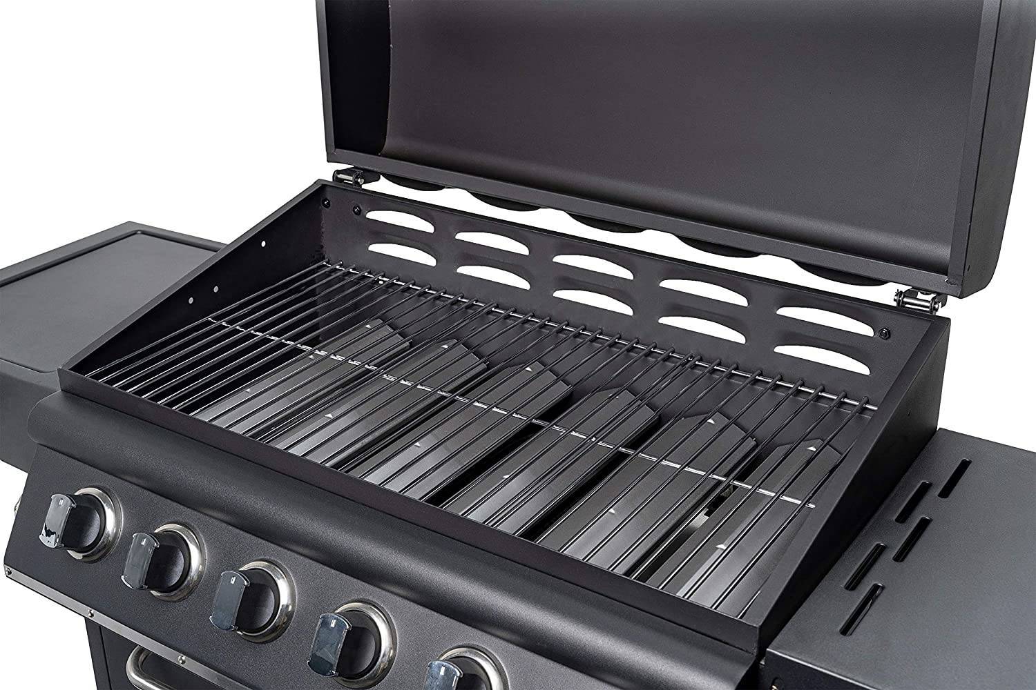 Es stehen sechs hochwertige Brenner mit je 2,5 Kilowatt Leistung zur Verfügung. Der praktische sowie leistungsstarke Seitenbrenner heizt mit einer Leistung von 3,2 Kilowatt gehörig ein. Bereits im Lieferumfang enthalten ist ein Druckminderer sowie ein Gasschlauch. Der Grillspaß kann direkt beginnen. Wird der Seitenbrenner nicht genutzt, so können beide Seitenablagen als Abstellfläche für Saucen, Dips & Getränke genutzt werden. Clever!