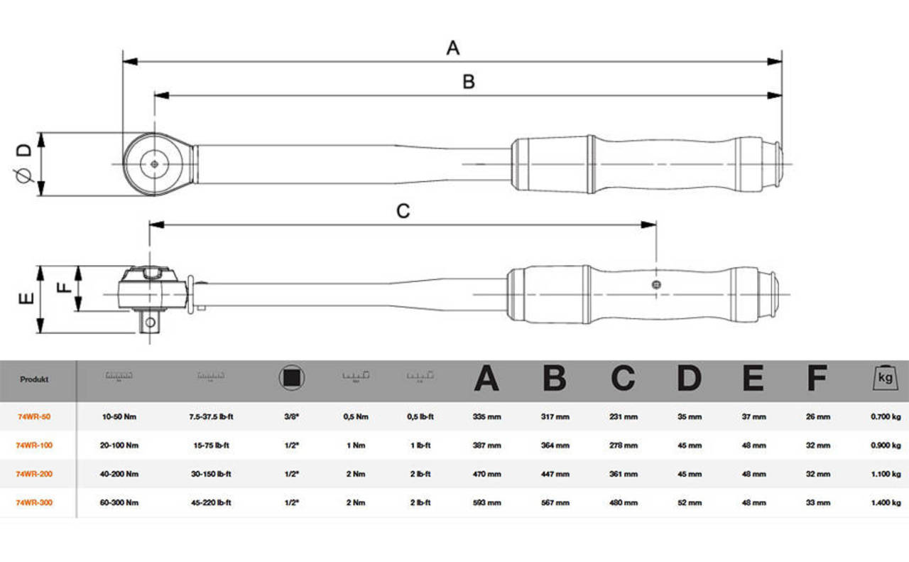 Der Bahco Drehmomentschlüssel 74WR-200 überzeugt durch Präzision & Qualität. Stellen Sie ein Moment von 40-200 Newtonmeter ein. Das profesionelle Werkzeug besitzt einen erstklassig-präzisen sowie robusten Mechanismus (über 100.000 Zyklen innerhalb Anzeigenabweichung). Am Griffende haben Sie die Möglichkeit das gewünschte Drehmoment per Schnelleinstellung einzustellen. Die Doppelskala welche British-Pfund (lb) sowie Newtonmeter (Nm) anzeigt vereinfacht das ganze. Anhand des prägnanten blauen Ringes erkennen Sie, ob das Tool über den Stellknopf entriegelt ist. Durch eine visuelle Anzeige Namens Timestrip®erkennen Sie, wann eine Neukalibrierung notwendig ist. Die Zeit unter Kontrolle. Clever und innovativ! Mit rund 1100 Gramm überzeugt das Bahco Präzisionswerkzeug durch eine Werte vermittelnde sowie solide Anmutung. Der 74WR-200 ausschließlich für den Rechts- und Linksanzug. Nutzen Sie das Werkzeug ausschließlich zum Anziehen von Schrauben beziehungsweise Muttern. Die Anzeigeabweichung beträgt ± drei Prozent. Bei Bahco zählen nämlich auch die inneren Werte sowie Präzision. Schätzen Sie das akustische als auch haptische Feedback des Erreichens vom eingestellten Drehmoment. Bahco´s Ratschenkopf des 74WR-200 ist umschaltbar. Alsgleich verfügt das Modell über einen 1/2 Zoll-Vierkantantrieb. In der Griffmitte befindet sich eine markante Markierung. So wissen Sie immer wo Druck ausgeübt werden muss, um das Moment nicht zu verfälschen. Der Hersteller liefert den Schlüssel in einer transparenten Kunststoffverpackung. Einer sicheren Aufbewahrung steht somit nichts im Wege. Darüber hinaus enthält der Lieferumfang eine Konformitäts-Erklärung (international). Das Tool von Bahco ist nach DIN EN ISO 6789 geprüft.