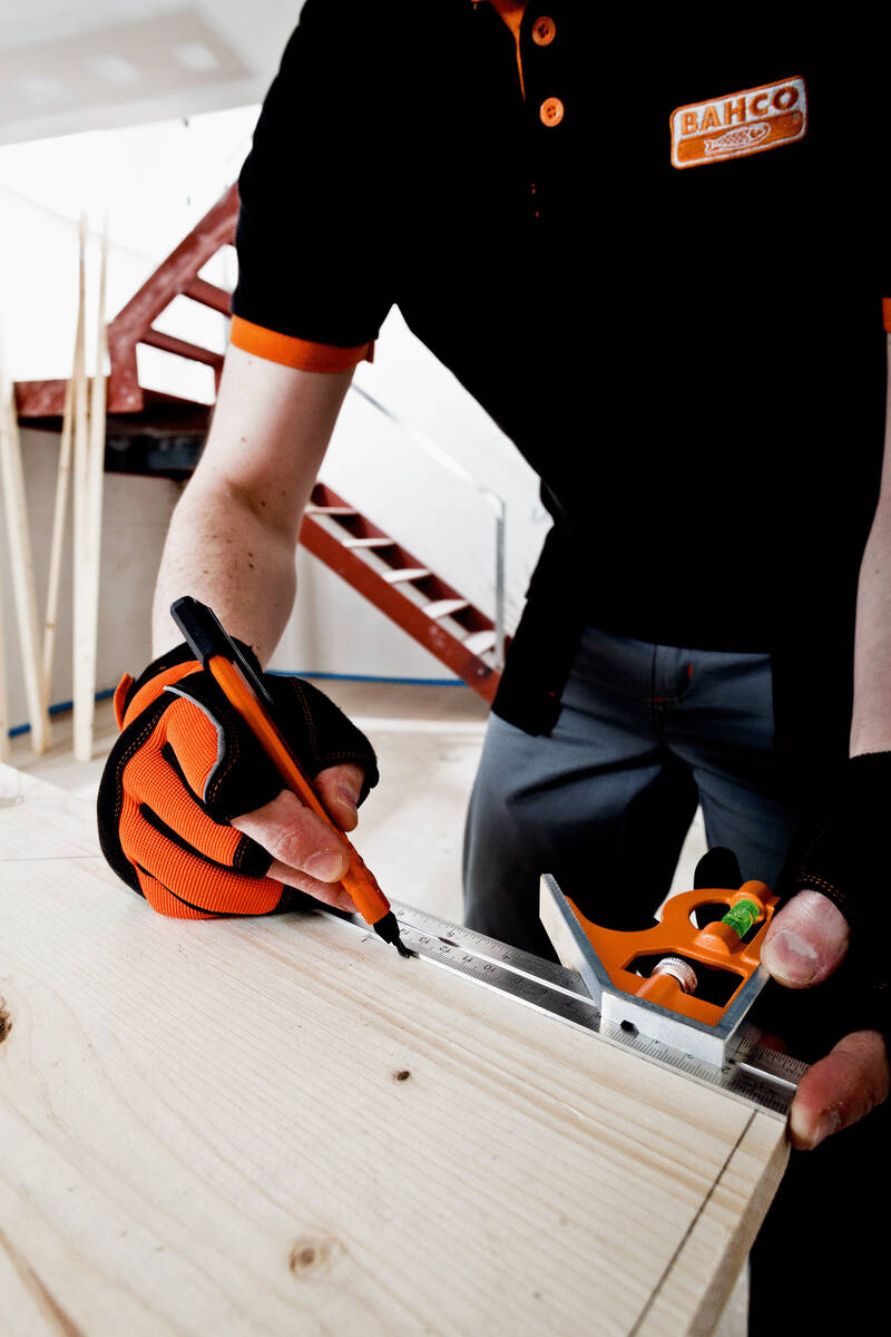 Die im Griff integrierte Libelle ermöglicht ein angenähertes Markieren, das zusätzliche Maß an Kontrolle und Genauigkeit bietet. So kannst du sicher sein, dass deine Markierungen perfekt ausgerichtet sind, ganz ohne lästiges Ausprobieren. Mit der im Griff eingebetteten Metall-Reißnadel wird das Werkzeug noch vielseitiger. Du hast alles, was du benötigst, griffbereit in einem praktischen Werkzeug. Diese Reißnadel ermöglicht es dir, präzise Spuren zu setzen und Materialien mit Leichtigkeit zu durchdringen. Der Bahco Kombinationswinkel mit Metall-Reißnadel ist nicht nur ein Werkzeug, sondern ein zuverlässiger Partner für Handwerker und Heimwerker gleichermaßen. Investiere in Qualität und Präzision, um deine Arbeitsweise zu optimieren und beeindruckende Ergebnisse zu erzielen. Mit Bahco hebst du dein Projekt auf das nächste Level.