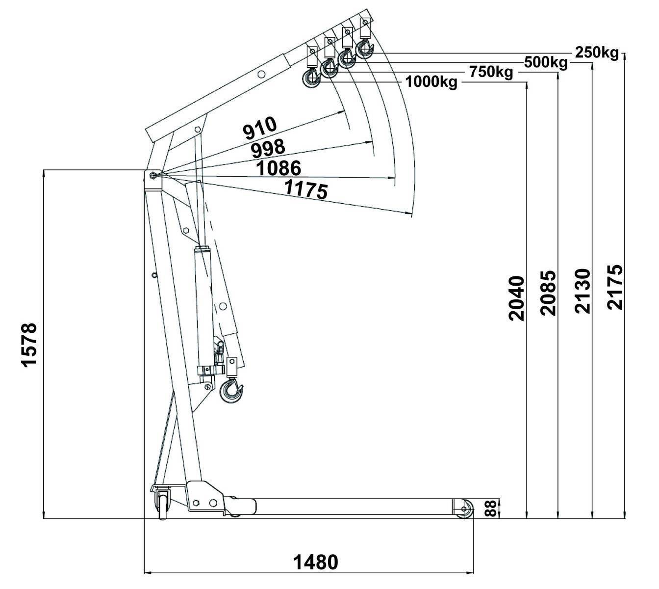 Bahco mobiler klappbarer Hebekran / Werkstattkran - BH6FC1000 - max. 1 Tonne Tragkraft