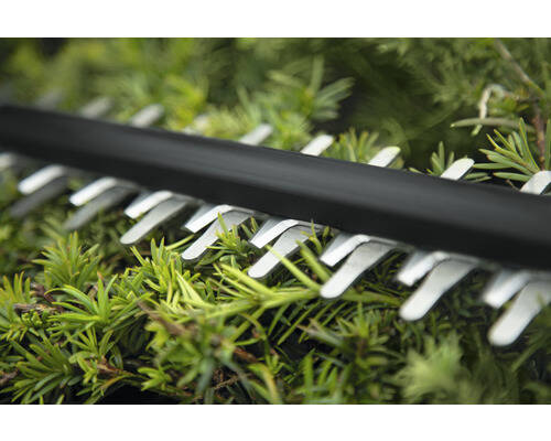 Das Sondermodell UniversalHedgeCut 18-55 von Bosch weiß durch viele clevere Merkmale zu überzeugen. Durch die innovative Quick-Cut-Technologie schneiden Sie Hecken und Büsche besonders schnell & effizient. Möglich macht dies die verlängerte Messeröffnungsphase der Akku-Heckenschere. Ebenso ist es möglich, die Heckenschere auf zwei Schnittlängen und Zahnöffnungen einzustellen. So schneiden Sie Äste meist schon im ersten Stepp. Quick und clever! Des Weiteren überzeugt der kompakte Gartenhelfer aus dem Hause Bosch durch ein perfekt ausbalanciertes Handling sowie optimalen Maschinen-Schwerpunkt. Auch längere Arbeiten am Stück sind dank des geringen Produktgewichts von rund 3,5 Kilogramm problemlos möglich. Ebenso trägt der mit Softgrip ummantelte Griff des Bosch Werkzeugs zur guten Haptik & Bedienerfreundlichkeit bei. Eine Beanspruchung von Armen und Schultern wird hierbei deutlich reduziert. Der Handschutz mit Durchsicht sowie der variabel einstellbare Vordergriff sorgen für mehr Bedienkomfort im Betrieb. So sehen Sie stets wo gerade angesetzt wird. Wo alternative Akku-Heckenscheren ans Limit geraten, ermöglicht das integrierte ABS-System (Anti-Blockier-System) unterbrechungsfreies Schneiden. Bosch stattet das Sondermodell UniversalHedgeCut 18-55 zudem mit Schweizer Präzisionsmessern aus. Selbige sorgen dank 55 Zentimeter langer Klinge und 22 Millimeter Zahnöffnung für qualitativ hochwertige Schnitte. Als weiteres Feature bietet der Gartenhelfer zusätzlich eine Sägefunktion. Bereits im Lieferumfang enthalten sind zwei kraftvolle 18-Volt Lithium-Ionen Akkupacks. Die im Set inbegriffenen Akkus verfügen über eine üppige Kapazität von 2,5 Ampere. Im Inneren der Bosch UniversalHedgeCut 18-55 Akku-Heckenschere arbeitet ein wartungsfreier Brushless-Motor. Letzterer verbindet die hohe Schneidleistung mit optimaler Langlebigkeit. Darüber hinaus arbeitet das Werkzeug effizienter als mit klassisch-ausgestatteten Bürsten-Motoren. Das Modell ist mit speziellen Sägezähnen ausgestattet. Äste bis zu 25 Millimeter schneidet der Gartenhelfer mühelos. Die Präzisionsmesser der UniversalHedgeCut 18-55 werden mit präziser Lasertechnik ausgeschnitten und per Diamantschliff weiterverarbeitet.