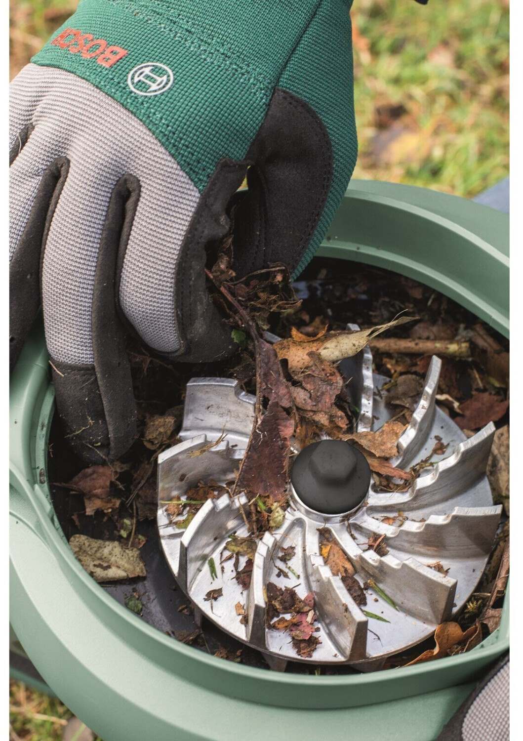 Mit dem Bosch UniversalGardenTidy 1800 W Laubsauger haben Sie den richtigen Helfer für Ihren Garten gefunden. Egal ob Sie mal eben was wegsaugen oder vom Gehweg pusten wollen, mit dem UniversalGardenTidy 1800 W von der Firma Bosch ist dieses alles kein Problem mehr. Dieser Premium Laubsauger der Firma Bosch verfügt über ein Metallhäckselrad, das im Nu Blätter beim Aufsaugen zerkleinert und so der Fangbehälter optimal genutzt wird. Dieses Metallhäckselrad zeugt schon von wahrer Qualität, da andere Laubsauger meistens ein Kunststoffrad besitzen und dieses anfälliger ist. Bei diesem Laubsauger brauchen Sie sich also ruhigen Gewissens keine Sorgen machen. Da es sich bei dem Bosch Laubsauger auch noch um ein ProSilence Gerät handelt, reduziert sich der Schallleistungspegel um bis zu 75 Prozent zu herkömmlichen Laubsaugern. Das bedeutet, dass der UniversalGardenTidy 1800 W einen Geräuschpegel von gerade einmal 99 Dezibel hat und somit deutlich leiser als seine Konkurrenten ist. Zudem verfügt der Laubsauger der Firma Bosch über einen Fangsack aus schmutzabweisendem Material und sogar einen Schnellverschluss für ein einfaches und zügiges Entleeren des Auffangbehälters. Der Bosch UniversalGardenTidy 1800 W besitzt zur einfachen Einstellung der Saug- bzw. Blasefunktion, eine stufenlose Drehzahleinstellung. Sollte es bei dem Laubsauger mal zu einer Verstopfung kommen, brauchen Sie sich hier rüber auch keine Sorgen machen, da der Bosch Laubsauger über eine große Spirale verfügt und das Reinigen somit kein Problem mehr ist.
