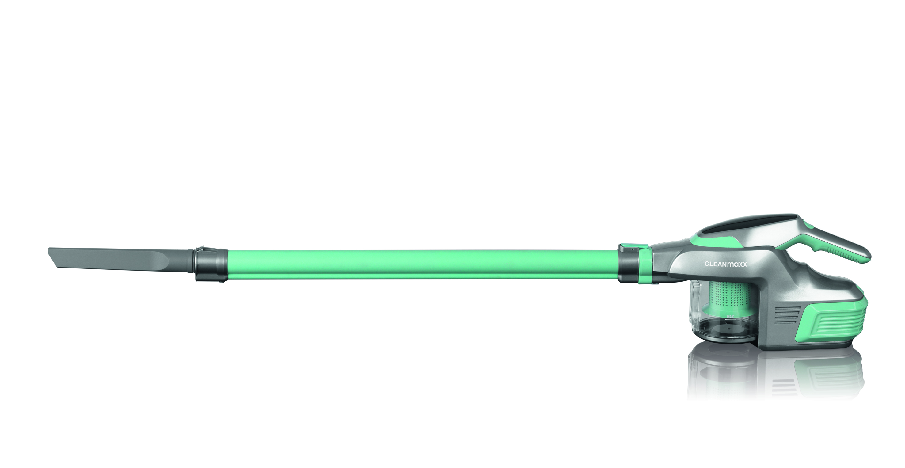 Mit dem kabellosen Hand- und Bodenstaubsauger von CLEANmaxx haben herkömmliche Bodenstaubsauger ausgedient. Dieses Kraftpaket ist dank 150 Watt Leistung sowohl als Hand- als auch als Bodenstaubsauger einsetzbar. Es punktet in Sachen Handhabung, Flexibilität und Saugkraft. Einfach mit dem stabilen Saugrohr zusammensetzen und los saugen. Mit dem Akku-Zyklonsauger von CLEANmaxx sind Tastaturen, Möbel, Autositze, Teppichböden und mehr blitzschnell von Staub und Schmutz befreit. Selbst Spinnweben lassen sich in Sekundenschnelle von der Decke entfernen. Die Saugkraft des kabellosen Hand- und Bodenstaubsauger von CLEANmaxx lässt sich nicht anpassen. Einfach Startknopf drücken und durchstarten! So gelangt der Schmutz durch den HEPA-Filter sicher in den Sauger und landet schließlich im leicht entleerbaren Staubbehälter. Der Behälter fasst 600 Milliliter, ideal für lange Sauggänge. CLEANmaxx steht mit seinem Akku-Zyklonsauger für eine rundum saubere Wohnung.