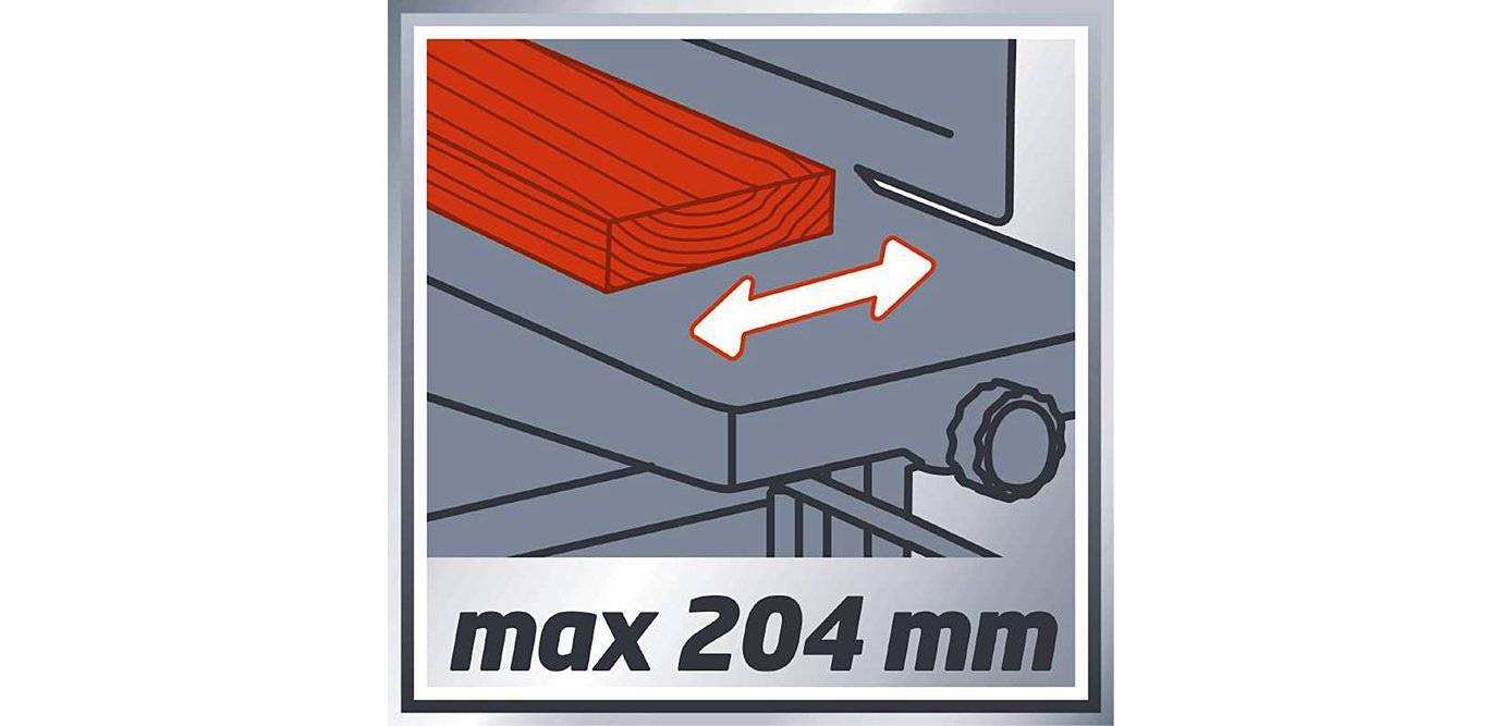 Die Einhell Hobelmaschine TC-SP 204 ist eine robuste Präzisionsmaschine zum Dickenhobeln und Abrichten. Mit dem Gewicht von 27 Kilogramm ist sie für den stationären Einsatz vorgesehen. Die Leistungsaufnahme beträgt 1500 Watt und 9000 Umdrehungen pro Minute. Durch vibrationsdämpfenden Füße, gewährleistet die Einhell Hobelmaschine TC-SP 204 stets einen sicheren Stand beim Arbeiten. Der Dickenhobel des Einhell Hobelmaschine TC-SP 204 verfügt über variabel ausfahrbare Werkstückauflagen, welche eine komfortable Handhabung versprechen. Um den Arbeitsplatz sauber zu halten, verfügt die Einhell Hobelmaschine TC-SP 204 über eine praktische Holzspan-Absaugung. Einfach einen Sauger mit hundert Millimeter Durchmesser anstecken und loslegen. Kein Dreck, keine Späne! Die Maschine besteht aus einer robust-massiven Konstruktion, deren Abrichthobeltisch aus stabilem Aluminium gefertigt und mit einem neigbaren Anschlag zum Fasen versehen ist. Ebenso verfügt die Einhell Hobelmaschine TC-SP 204 über einen Überlast sowie Nullspannungsschalter, der ein unbeabsichtigtes Anlaufen der Maschine nach einem Stromausfall verhindert. Der maximale Materialabtrag beim Abrichthobeln beträgt drei Millimeter und zwei Millimeter beim Dickenhobeln. Die Vorschubgeschwindigkeit der Einhell Hobelmaschine TC-SP 204 beträgt sechs Meter pro Minute.