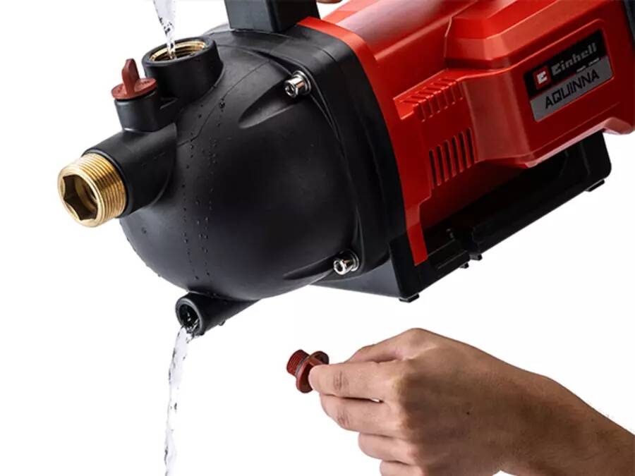 Die AQUINNA Gartenpumpe von Einhell arbeitet netzunabhängig mit zwei 18 Volt Power X-Change-Akkupacks. Als Mitglied des Power X-Change Systems nutzt du Batterien und Ladegeräte der Systemreihe flexibel in Einhell Werkstatt- und Gartengeräten. Die AQUINNA 36/30 lässt sich je nach Anwendung zweistufig einstellen. Die Akku-Gartenpumpe besitzt hierfür einen ECO-Schalter für die entsprechende Einstellung. Nutze die Pumpe entweder im Energiesparmodus mit weniger Förderdruck oder mit voller Leistung. Das Modell bewältigt eine Förderhöhe von bis zu 26 Metern, bei einer Ansaughöhe von bis zu 8 Metern. Pro Stunde lassen sich somit Fördermengen von bis zu 3.000 Liter erreichen. Der Wasseranschluss auf der Saugseite beträgt 42 Millimeter (Gewinde 1 1/4" AG). Auf der Druckseite stehen dir 33,3 Millimeter (R1 IG) zur Verfügung. Zusätzlich punktet die Einhell AQUINNA 36/30 Akku-Gartenpumpe mit einer Wasserablassschraube gegen Frost. So verstaust du das Modell sicher in der kalten Jahreszeit. Für noch mehr Komfort im Betrieb sorgt eine Wassereinfüllschraube am Pumpengehäuse. Einhell denkt hier einen Schritt weiter. Das Thema Sicherheit schreibt Einhell groß, deshalb schützt ein integrierter Überlastschutz den Motor vor Überhitzungsschäden. Dank des Tragegriffs lässt sich die Akku-Gartenpumpe ruckzuck an jeden beliebigen Einsatzort tragen. Die Lieferung erfolgt bei diesem Sologerät ohne Ladegerät und Akku. Diese sind separat erhältlich, zum Beispiel als Starterset von Einhell.