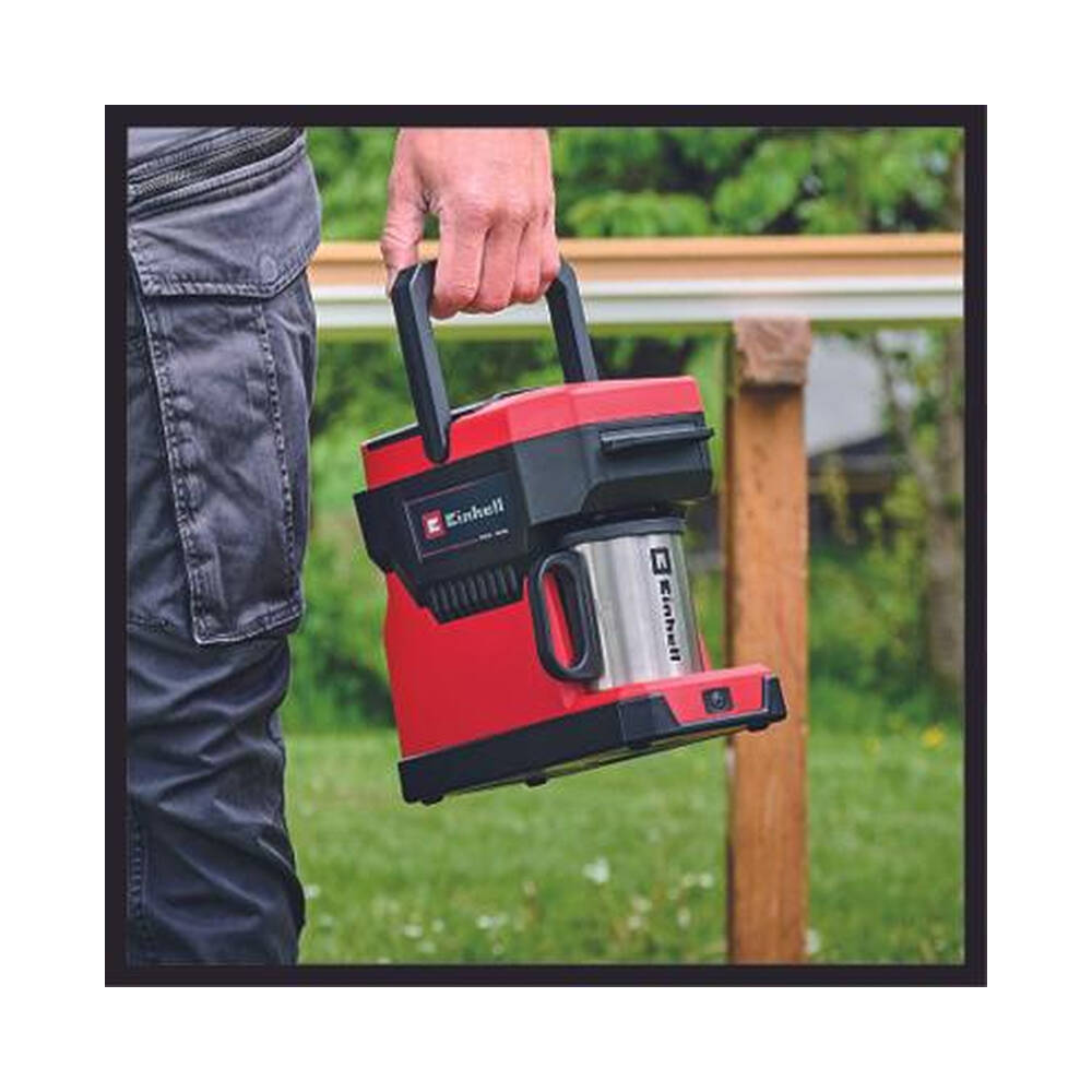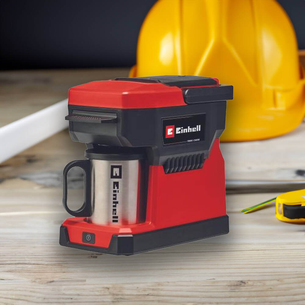 Dank 2-in-1-Funktion überzeugt die Einhell Akku-Kaffeemaschine sowohl als Filterkaffee- und Kaffeepad-Maschine. Die Brühdauer beträgt etwa 5 Minuten. Die maximale Kaffeetemperatur gibt der bayrische Werkzeug-Hersteller mit angenehmen 80 Grad an. Der entnehmbare 240 Milliliter Wasserbehälter ist für Tassen bis zu einer Höhe von 90 Millimeter ausgelegt. Der integrierte Tragegriff in Kombination mit dem geringen Gewicht von 1,25 Kilogramm ermöglichen einen problemlosen Transport. Egal wo du dein Lieblingskaffee genießen möchtest. Auf der Terrasse oder der Baustelle. Im Neubau oder dem Campingtrip. Die Einhell TE-CF 18 Li-Solo ist an deiner Seite und immer am Start!