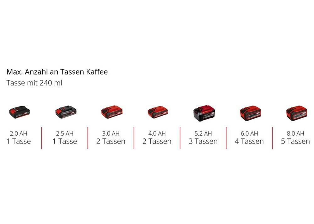 - Max. 1-5 Tassen Kaffee, je nach Akkugröße