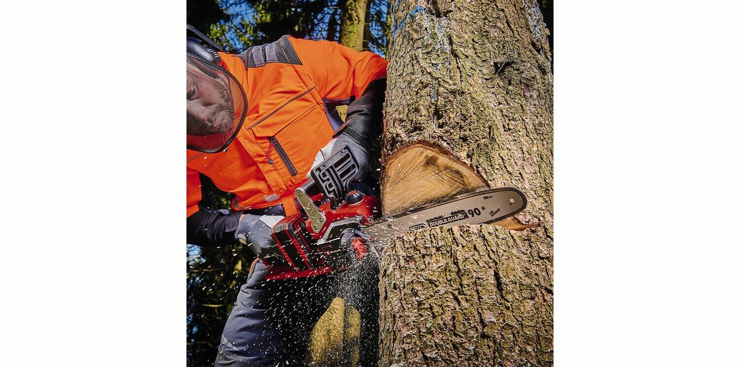 Die Akku-Kettensäge GP-LC 36/35 Li-Solo aus der Professional-Serie von Einhell überzeugt durch Attribute die es in sich haben: der Gartenhelfer lässt sich dank fehlendem Stromkabel flexibel einsetzen. Zudem arbeitet das Tool kraftvoll und präzise zugleich. Als Mitglied der Power X-Change-Familie von Einhell treiben zwei leistungsstarke 18V-Akkus die GP-LC 36/35 Li-Solo an. Angetrieben wird das Gerät von dem Einhell PurePOWER Brushless Motor. Der spezielle Motor ohne Kohlebürsten bietet dir mehr Kraft und eine längere Laufzeit als bei klassischen Motoren. Nach der Online-Registrierung bei Einhell gelten 10 Jahre Garantie auf den Brushless-Motor.