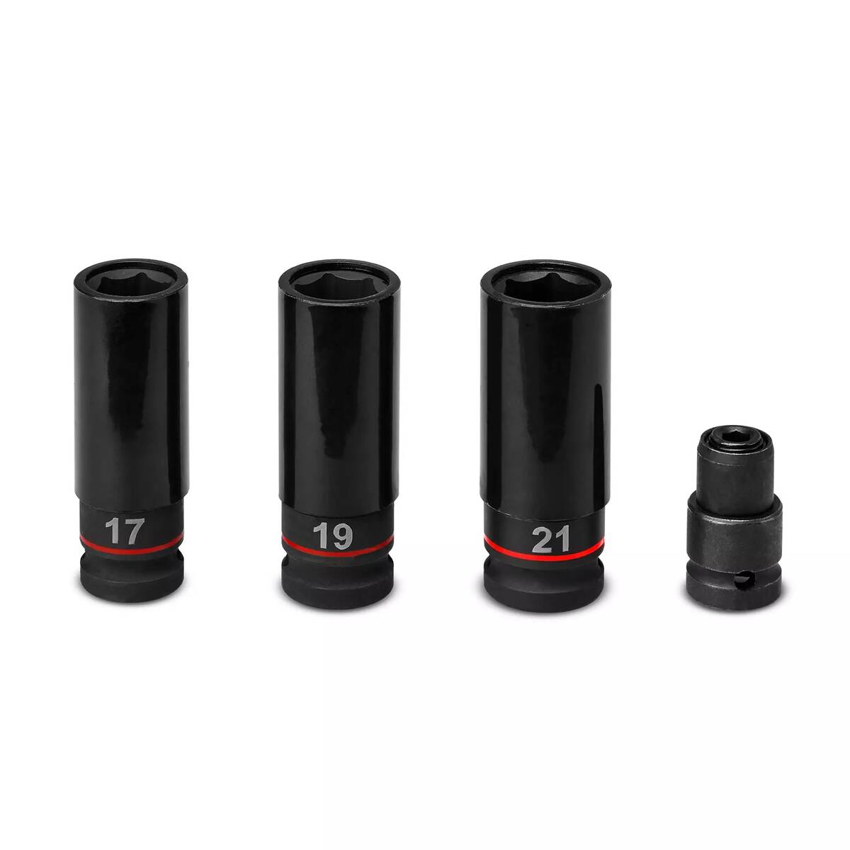 Die 1/2 Zoll Außenvierkant-Aufnahme (12,7 mm) erlaubt dir eine Nutzung gängiger Nüsse. Das rote Power-Werkzeug bietet ein maximales Drehmoment von 260 Nm Newtonmeter sowie ein Lösemoment bis 500 Nm Newtonmeter. Über drei Leistungsstufen stellst du Drehzahl und Drehmoment präzise ein. Praktisch ist die Auto-Stop-Funktion des bayrischen Herstellers. Sie beendet den Schraubvorgang automatisch bei rund 100 Newtonmetern. So verhinderst du ein Überdrehen von Radschrauben und kannst anschließend mit dem Drehmomentschlüssel exakt nachziehen. Beim Herausdrehen stoppt der Schlagschrauber automatisch, sobald kein Widerstand vorhanden ist.