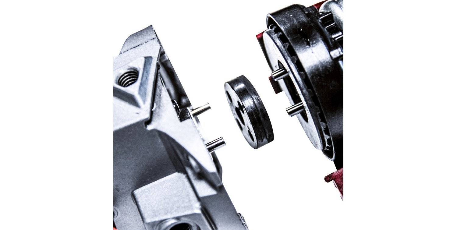 Wer kennt es nicht. Ein Werkstück ist einfach zu groß oder zu sperrig, um in der geliebten Werkstatt platziert zu werden. Oder noch schlimmer, es ist keine Steckdose in der Nähe, um das Werkzeug mit der nötigen Energie zu versorgen. Mit dem leistungsstarken AXXIO von Einhell gehört dieses Problem der Vergangenheit an. Dank modernster Lithium-Ionen Technologie kann der Akku-Winkelschleifer mit allen kompatiblen 18 Volt Akkus aus der Power X-Change Familie betrieben werden. Einhell empfiehlt Akkus mit mindestens 2,5 Ampere Kapazität für optimale Ergebnisse. Ebenso garantiert der zuverlässige bürstenlose Motor Laufruhe, viel Power & eine enorm hohe Lebenserwartung. Ein bürstenloser Motor ist ein Elektromotor ohne Kohlebürsten, das heißt ohne Schleifkontakte. Bei bürstenlosen Motoren besteht also kein elektrischer Kontakt zwischen dem beweglichen Motor und dem feststehenden Stator. Die Kohlebürsten dienen der elektrischen Verbindung zwischen Rotor und Stator. Sie unterliegen durch den mechanischen Abrieb und das Bürstenfeuer einem ständigen Verschleiß. Beim bürstenlosen Elektromotor wird auf Schleifringe oder Kommutator und Bürsten verzichtet, wodurch der Motor eine höhere Standzeit hat. Der Name ist Programm. Denn die bürstenlosen Akku-Motoren arbeiten komplett ohne Kohlebürste und besitzen dadurch einen nahezu verschleißfreien Antrieb. Darüber hinaus benötigt der Brushless-Motor zur Erzeugung der Drehbewegung weniger Energie & verursacht dadurch auch weniger Abwärme als vergleichbare Motoren mit Bürste. Somit kann mit dem Einhell AXXIO Akku-Winkelschleifer mit jeder Akku-Ladung effizienter und auch länger gearbeitet werden als mit gewöhnlichen Elektrowerkzeugen. Auch an die Sicherheit wurde beim AXXIO aus dem Hause Einhell gedacht. So ist der nützliche Akku Helfer mit einem Softstart und Wiederanlaufschutz ausgestattet. Darüber hinaus sorgt ein integrierter Überlastungsschutz für eine lange Lebensdauer der Maschine. Der Scheibenschutz ist stufenlos verstellbar, sodass das Werkzeug flexibel eingesetzt werden kann. Ein zweiter Zusatz-Handgriff sowie eine schlanke Bauform erhöhen weiterführend die Sicherheit des Bedieners. Bei der Auswahl des Maschinen-Getriebes wurde auf ein solides Aluminium-Gehäuse gesetzt.