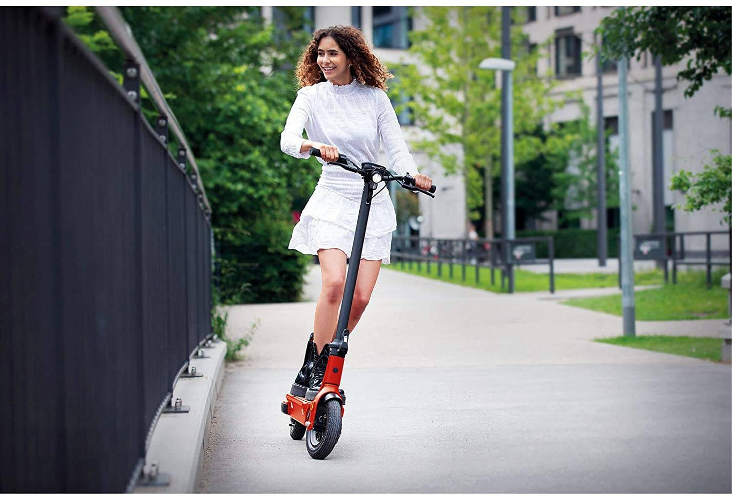 Raus auf die Straße! Emissionsfrei mit Spaß zum Bäcker oder zum See rollen? Kein Problem. Der Einhell E-Scooter Elmoto-Kick C2 36 Li K überzeugt durch herausragende Eigenschaften und Vollausstattung. Einhell erweitert seine Power X-Change Akku-Familie um ein weiteres Mitglied. Diesmal geht es um keinen Akkuschrauber oder Akku-Winkelschleifer. Der Elmoto-Kick von Einhell bringt Fahrspaß mit bis zu 20 Kilometern die Stunde. Natürlich sind eine Wegfahrsperre sowie Straßenzulassung mit an Bord. Der Elmoto-Kick C2 36 Li K ist für Erwachsene und Jugendliche ab 14 Jahren geeignet, das Höchstgewicht liegt bei 120 Kilogramm. Für eine Spritztour nach Sonnenuntergang verfügt der E-Scooter über eine integrierte Beleuchtung vorne als auch hinten. Zudem sind Reflektoren vorhanden.
