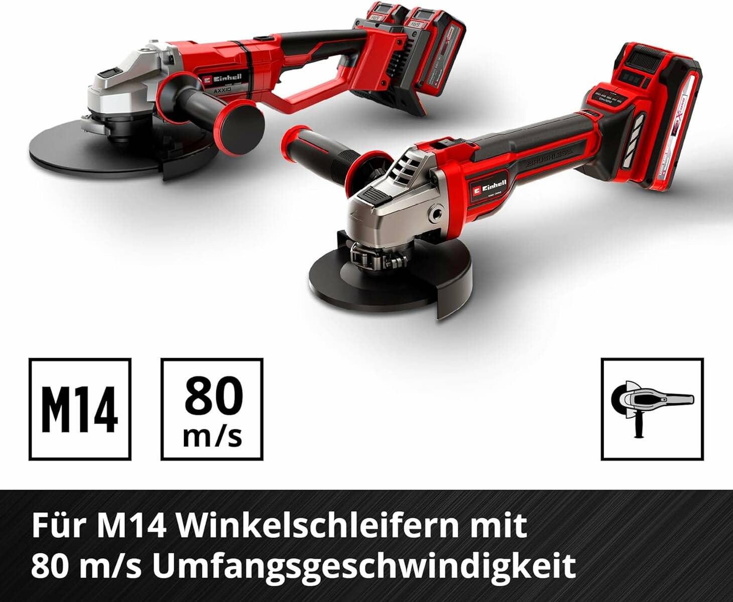 Kompatibel mit allen Winkelschleifern: Egal, ob du einen akkubetriebenen oder kabelgebundenen Winkelschleifer verwendest: Das Einhell Set ist mit allen handelsüblichen Winkelschleifern kompatibel, die eine Umfangsgeschwindigkeit von 80 m/s und eine M14 Aufnahme besitzen.