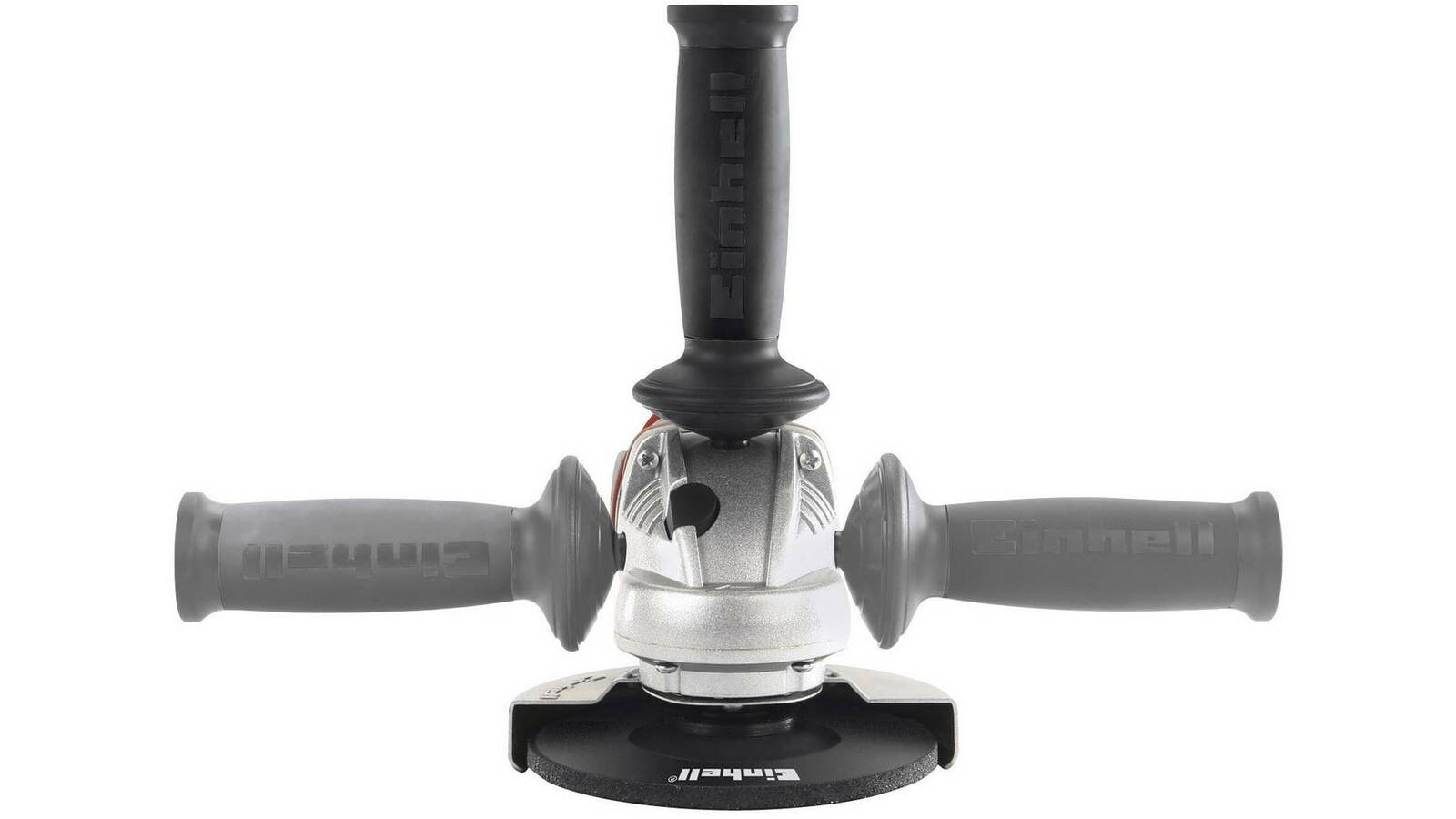 Hinter dem Modellnamen TE-AG 125/750 verbirgt sich ein hochwertiges Experten-Tool für Heimwerker. Der Winkelschleifer aus dem Hause Einhell deckt ein breites Spektrum von Trenn-, Schleif- und Schrupparbeiten rund ums Haus ab. Einhell integriert ein werkzeuglos-verstellbaren Scheibenschutz. Somit stellen Sie den Winkelschleifer auf individuelle Arbeitsbereiche ein. Dank Spindelarretierung punktet das kompakte Werkzeug mit schnellem Scheibenwechsel. Alles natürlich, werkzeuglos. Darüber hinaus sorgt der flache Metallgetriebekopf für optimale Kraftübertragung von Maschine auf Scheibe. Zusätzlich profitiert das Modell von Einhell durch den daraus resultierenden vibrationsarmen Lauf. Sicherheit sowie ein hohes Maß an Bedienkomfort sind wichtige Eigenschaften. Deshalb stattet Einhell den TE-AG 125/750 darüber hinaus mit rutschfester Softgrip-Ummantelung aus. In Verbindung mit dem robusten Zusatzhandgriff bleiben wahrlich keine Wünsche übrig. Stellen Sie den praktischen Handgriff in drei unterschiedlichen Positionen ein. Hier findet jeder die Richtige Haltung zum Schleifen. Egal wie anspruchsvoll das jeweilige Projekt sein mag. Den Spruch Simply Clever kennt man eigentlich von einem anderen Hersteller. Jedoch denkt Einhell bei einem Feature weiter. So lässt sich der im Lieferumfang enthaltene Stirnlochschlüssel zum Lösen und Festziehen der Schleifscheiben bequem im Zusatzhandgriff verstauen. So ist dieser direkt zur Stelle wenn man ihn braucht. Clever. Dank Kabelclip zur Fixierung des aufgewickelten Kabels lässt sich der Winkelschleifer TE-AG 125/750 stets sicher verstauen. Im Lieferumfang befindet sich keine Trennscheibe. Mit unter zwei Kilogramm Eigengewicht eignet sich das Tool auch für längere Einsätze ohne Ermüdungserscheinungen. Die maximale Schnitttiefe beträgt laut technischem Datenblatt 33 Millimeter. Der Scheibendurchmesser beträgt maximal 125 Millimeter.
