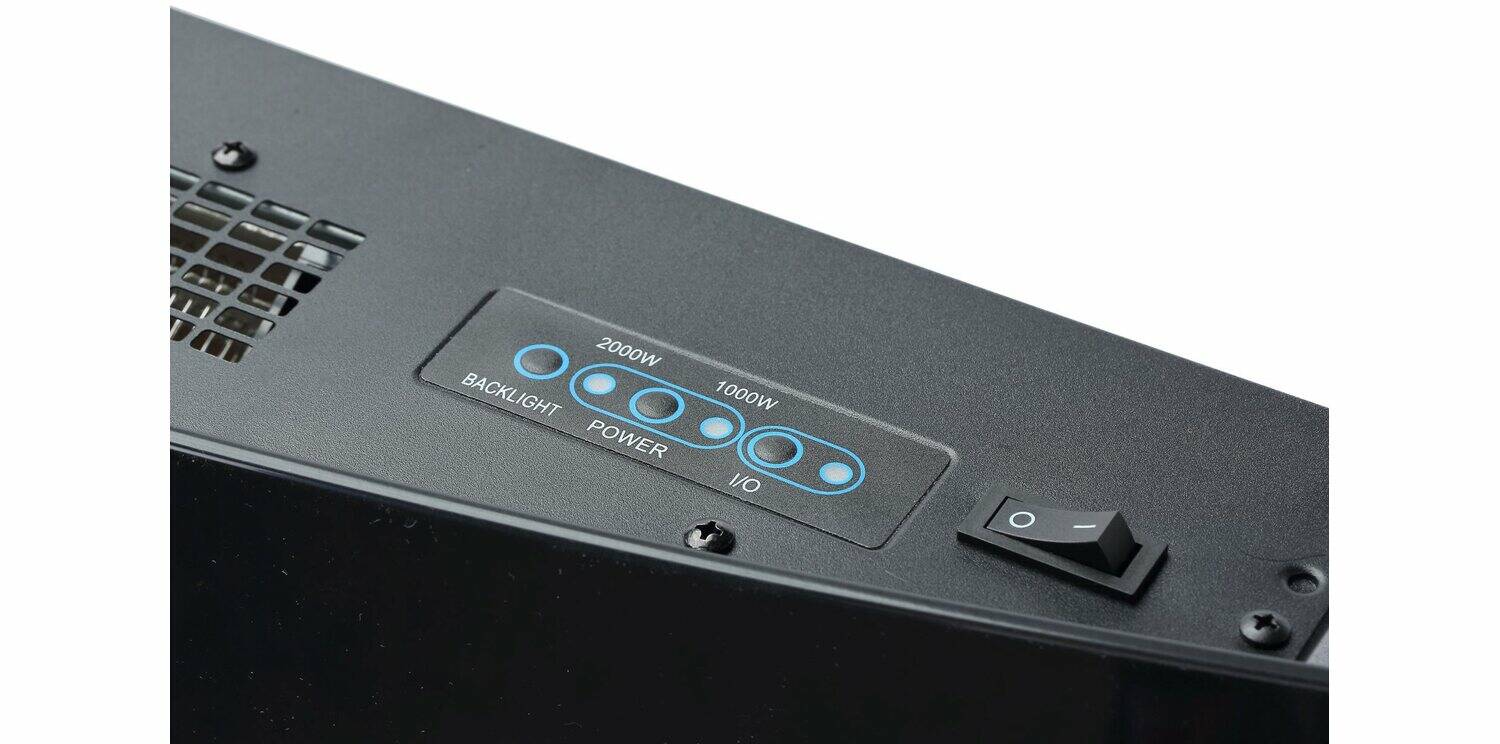 Kuscheliges Ambiente gepaart mit Sicherheit und Komfort. An dieser Stelle setzt der Elektrokamin Davos (Zürich 2.0) von El Fuego an. Genießen Sie einen hochmodernen Gluteffekt durch LED-Beleuchtung. Die Flammen lassen sich nach Herzenslust via Fernbedienung dimmen. Schaffen Sie ihre Wohlfühloase in der kalten Jahreszeit. Egal ob ungemütlicher Herbsttag oder klirrend kalte Winterzeit. Der Elektrokamin Davos von El Fuego besitzt eine konvex-rund gebogene Sicherheitsglasscheibe. Ein echter Hingucker in vielen Wohnräumen. Die Maße des Davos zeigen sich kompakt. Sie betragen laut El Fuego 89 Zentimeter in der Länge sowie 48 Zentimeter in der Breite. Die Tiefe beträgt lediglich 13,5 Zentimeter. Das Modell eignet sich für die Wandmontage. Zwei Heizstufen lassen sich parallel zum Gluteffekt beischalten. Wählen sie via Fernbedienung oder am Elektrokamin selbst zwischen 1000 Watt und 2000 Watt. Ein integrierter Überhitzungsschutz sorgt für zusätzliche Sicherheit im Betrieb. Bei Überlast schaltet der E-Kamin automatisch ab. Gegenüber klassischen Kaminöfen schließen Sie den El Fuego Davos (Zürich 2.0) einfach über die Haussteckdose an. Kein Installateur oder komplizierte Schornsteinfeger-Abnahme von Nöten. Darüber hinaus bietet das Modell ein weiteres Highlight. Per Knopfdruck aktiviert der Anwender das seitliche LED-Licht. So erweitert der Kamin sein Licht-Spektrum und lässt die komplette Wand erstrahlen. Tauchen Sie ein in ein wohlig-warmes Gelb, über ein beruhigendes Tiefblau oder ein wärmenden Rotton. Weitere Merkmale sind der mehrfach einstellbarer Timer sowie ein ins Sicherheitsglas eingelassenes Display. Letzteres zeigt nützliche Informationen über die aktuellen Heiz- und Timer-Einstellungen an. Lassen Sie sich verwöhnen. Mit El Fuego.