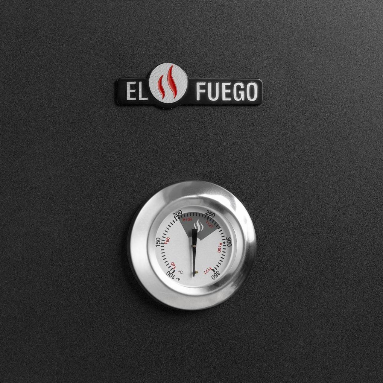 Lust auf Grillen & Smoken? Klar mit EL FUEGO®. Egal ob Gemüse, Fisch, Hähnchen oder Rind. Der Gas-Smoker Portland SF von EL FUEGO® weiß stets zu überzeugen. Dank separat angebrachter Feuer-Box bleibt mehr Platz für Grillgut im Garraum. Nicht nur das Fassungsvermögen profitiert durch die eigene Räucherbox-Komponente. Auch die Handhabung der Befeuerung bewerkstelligt sich komfortabler als bei anderen Modellen. Zusätzlich bleibt der Garraum während des Garprozesses dauerhaft geschlossen. Somit wird die Temperatur im Innenraum konstant hochgehalten und kaum beeinflusst. Praktisch, da bei einer Türöffnung wertvolle Hitze verloren geht. Diese Eigenschaft kommt vorwiegend zu tragen, wenn Aromahölzer oder Ähnliches nachlegt werden. Einfach Räucherspäne und Co. nach Bedarf einfüllen und starten! Durch die aromatisierten Hölzer ist es möglich, ein Grillerlebnis wie beim klassischen Holz-befeuerten Smoker-Grill zu erzielen. Clever. Ebenso ist der El Fuego® Gas-Smoker auch ohne Rauch nutzbar. Tipp: Füllen Sie Wasser in die Schale und garen Sie das Gemüse oder Ähnliches schonend im Wasserdampf. Durch diese Methode bleiben wichtige Nährstoffe im Gemüse erhalten. Der Portland SF ist vielseitig einsetzbar. Ob als traditioneller Räucherofen, Dampfgarer oder als Gasgrill im low-and-slow-Prinzip. Hier kommt jeder auf seine Kosten. EL FUEGO® hat den Smoker mit einem extra-großen Fassungsvermögen ausgestattet. Allein die Grillfläche beträgt circa 35 mal 24 Zentimeter – und das mal sechs. Mit Gesamtmaßen von 89 mal 127,5 sowie 53,5 Zentimetern in der Tiefe macht der Portland SF einiges her. Die nächste Feier mit Freunden & Familie kann kommen. Der leistungsstarke Brenner des Gas-Smoker (4,4 Kilowatt) erzeugt genügend Hitze, um Garprozesse mühelos bei voll besetzter Garkammer zu gewährleisten. Des Weiteren ist im Lieferumfang eine üppige Wasserschale enthalten. Selbige garantiert eine erstklassige Aromatisierung sowie ausgiebig lange Garprozesse im Gas-Smoker Portland SF von EL FUEGO®. Mal etwas anderes probieren? Testen Sie doch einmal mariniertes Wasser oder Brühe anstelle klarem Wasser. Verleihen Sie Ihren Lebensmitteln einen eigenen Charme. Beim Portland SF ist Vielseitigkeit an der Tagesordnung. Vertrauen ist gut, Kontrolle ist besser. Das integrierte Thermometer sorgt jederzeit für den Überblick über das Grillgut.