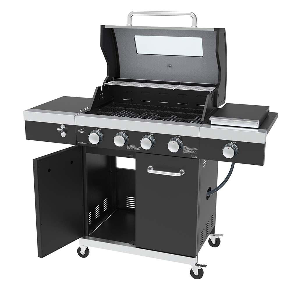 Grillen wie ein Profi. Mit dem Gasgrill Kingston von El Fuego zaubern Sie Grillfeste in bester Manier. Die 2 Haupt- und Nebenbrenner sowie der Infrarotbrenner lassen kaum Wünsche offen. Eines der zahlreichen Highlights sticht direkt ins Auge des Betrachters: Das groß bemessene Panorama Sichtfenster, welches in der Garhaube eingelassen ist, sorgt für eine perfekte Übersicht des Grillguts. Jederzeit! Alles ohne Öffnen der Grillhaube. Des Weiteren punktet der El Fuego Gasgrill mit einem integrierten Thermometer im Deckel. Dank des Sichtfensters und Thermometers der Anwender unnötiges Öffnen & Schließen und vermeidet somit eine Störung des Garvorgangs. Der Gasgrill Kingston von El Fuego lässt dem Anwender die Qual der Wahl in Sachen Grill- und Kochkreativität. Der Kingston kann mehr als einfach nur eine Wurst grillen. Nutzen Sie den separaten Seitenbrenner zum erhitzen & Zubereiten von Soßen und mehr. Zudem überzeugt das schlicht-zeitlose Design. Die beleuchteten LED-Bedienknöpfe des El Fuego Gasgrill lassen die Herzen jedes Grillfans höherschlagen. Der El Fuego Grill überzeugt als authentischer Hingucker. Mithilfe der Piezo-Zündung entfachen Sie den Gasgrill im Handumdrehen. Hohe Betriebstemperaturen lassen sich in wenigen Minuten erreichen. Grillen mit Holzkohle? Das war gestern! Der Kingston wird nach hohen Qualitätsstandards gefertigt. Der Grill entspricht sämtlichen geltenden Normen, um bestmögliche Sicherheit beim Grillen zu gewährleisten. Für ein müheloses Umparken oder Verstauen des Designer-Grills verfügt das Modell über robuste Kunststoffrollen. Flexibilität wird bei El Fuego großgeschrieben. Zusätzlich bietet der Kingston großzügige Seitenablagen und einen Flaschenöffner. Benötigte Utensilien für die Grillparty bleiben jederzeit in Sicht- und Griffweite. Der Gasgrill von El Fuego überzeugt Freunde und Familie gleichermaßen. Hier lassen sich Grillfeste zelebrieren.