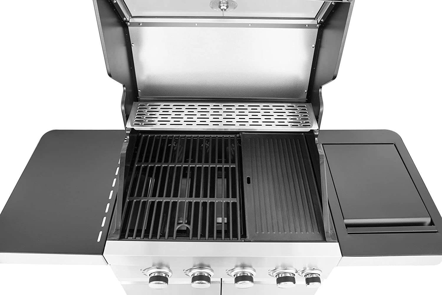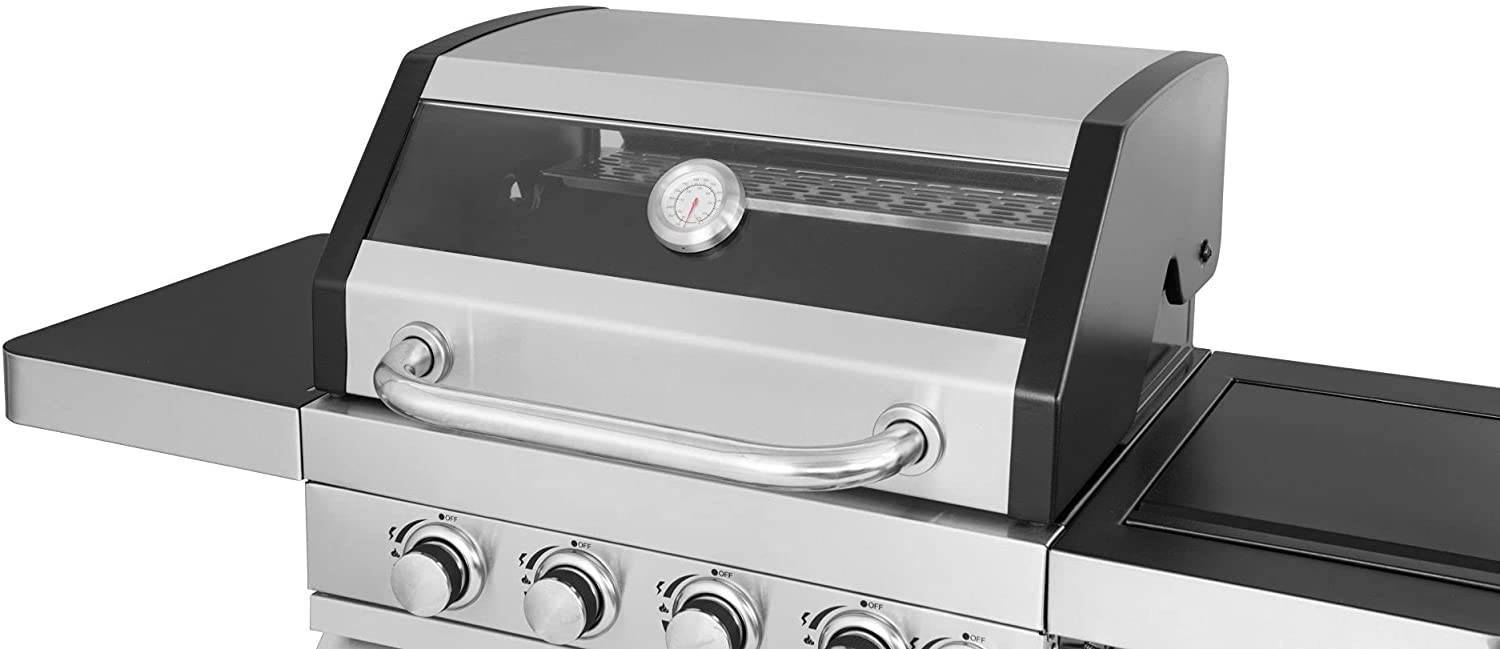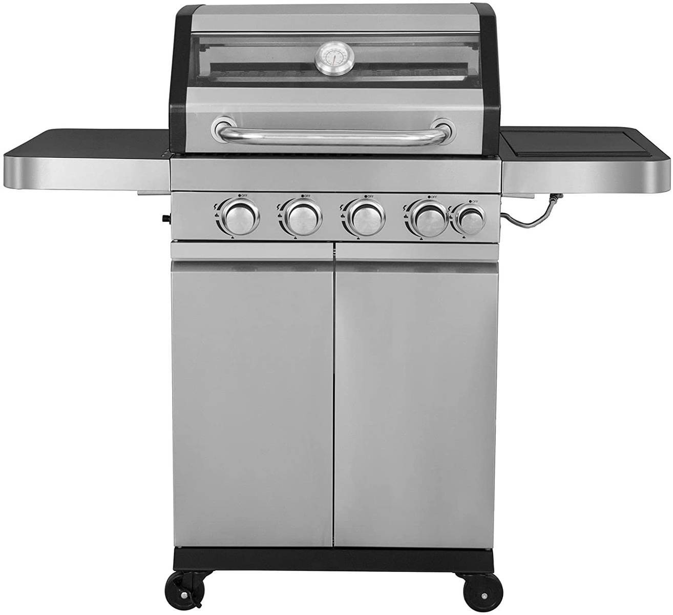Der Gasgrill SUNSET BEACH von El Fuego hat nicht nur einen schönen Namen. Er wird auch nach höchsten Qualitätsstandards gefertigt. Zudem entspricht der Premium Gasgrill allen geltenden Normen. Denn nur die best-mögliche Sicherheit beim Grillen ist El Fuego gut genug. Der SUNSET BEACH ist ein wahrer Allrounder. Die vier leistungsstarken Hauptbrenner mit 3,0 Kilowatt Leistung sowie dem nützlichen Seitenbrenner für Beilagen oder Saucen, sind Sie immer gut aufgestellt. Nur Bratwürste grillen kann jeder! Auch größere Grillfeste mit Freunden & Familie sind kein Problem für den SUNSET BEACH von El Fuego. Durch die üppig bemessene Grillfläche (35 mal 42 Zentimeter) bereiten Sie auch größere Mengen Grillgut nach Herzenslust zu. Als Besonderheit verfügt das Modell über ein großes Panorama-Glassicht-Fenster mit eingebautem Thermometer. So haben Sie das Grillgut dank optischer Kontrolle stets im Blick. Zusätzlich wirkt der El Fuego SUNSET BEACH design-technisch schlank & modern. Ein Blickfang in jedem Garten oder der Terrasse. Ein weiterer Vorteil der großen Garhaube mit Fenster besteht darin, dass Sie den Deckel nicht jedes Mal Öffnen müssen um das Grillgut zu kontrollieren. Somit bleibt wertvolle Hitze gespeichert. Clever! Der Einsatz von hochwertigem Edelstahl sorgt zum einen für ein schickes & modernes Erscheinungsbild. Zum anderen gestaltet sich die Reinigung aller Oberflächen einfacher als bei alternativen Materialien. Bei Nutzung eines gasbefeuerten Grills genießen Sie erwähnenswerte Vorteile gegenüber einem klassischen Holzkohlegrill: Stichwort Komfort und Nutzbarkeit. Starten Sie innerhalb von wenigen Minuten mit maximaler Temperatur durch. Auch die Nutzung im Spätherbst oder Winter gestaltet sich deutlich einfacher. Der El Fuego SUNSET BEACH bietet großzügige Seitenablagen welche teils abklappbar sind. Durch die praktischen Ablagen haben Sie alle benötigten Utensilien stets griffbereit. Nach der Grill-Saison ist vor der Saison. Dank der großen sowie bremsbaren Räder, transportieren Sie Ihren Gasgrill bequem in das Winterquartier.