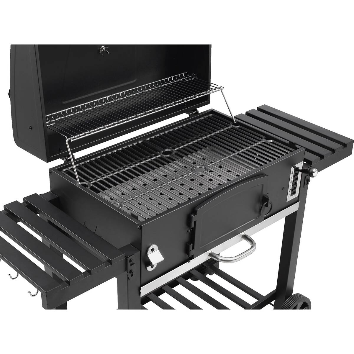 Die 72 x 42 Zentimeter große Grillfläche lässt mehrere Gerichte gleichzeitig garen. Gusseiserne Roste verteilen die Hitze vom El Fuego Ontario XXL gleichmäßig. Sie sorgen zudem für ein kräftiges Branding, denn das Auge isst bekanntlich mit. Auf dem separaten Warmhalterost hältst du fertiges Grillgut bereit, ohne dass es nachgart. Die höhenverstellbare Kohlenwanne stellst du bequem in sechs Stufen ein. Sie erlaubt eine exakte Hitzeeinstellung je nach Gericht und Garverlauf. Steuere scharfes Anbraten oder schonendes Garen direkt und ohne Umwege. Drehbare Luftklappen und ein Kamin regulieren die Luftzufuhr des El Fuego Grills. Das integrierte Thermometer zeigt dir jederzeit die Innentemperatur für mehr Übersicht deiner Gerichte. Praktische Details wie ein herausnehmbarer Auffangbehälter erleichtern dir die Reinigung nach dem BBQ um ein Vielfaches.