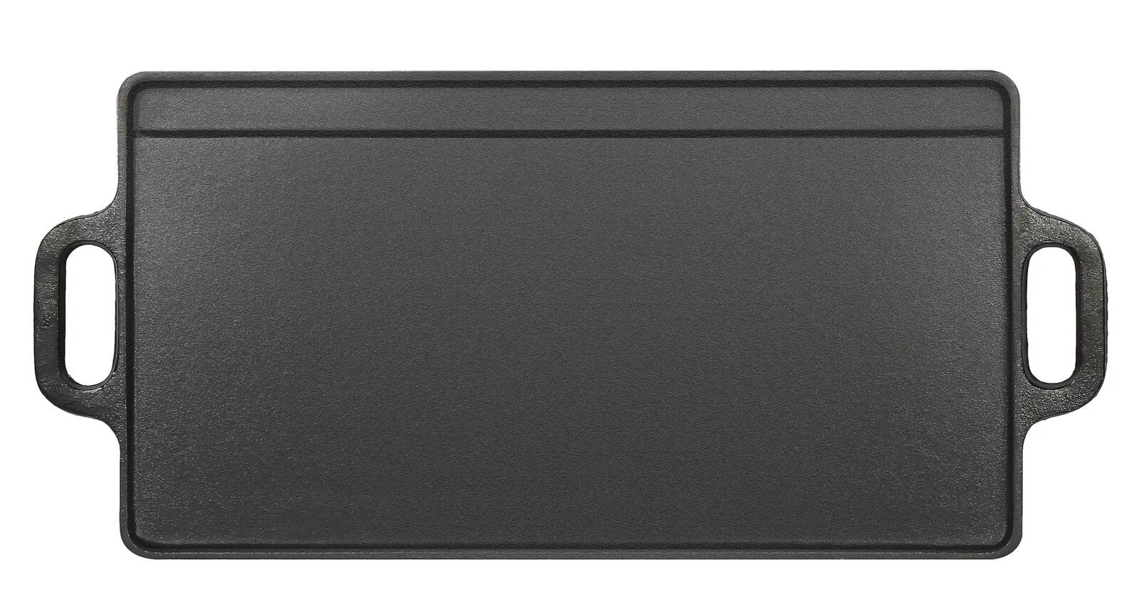 Erlebe Grillfreuden auf höchstem Niveau mit der El Fuego Gusseisen Grillplatte – ein Kunstwerk aus massivem Gusseisen, bereits eingebrannt für sofortige kulinarische Genüsse. Die markante Riffelung auf eine der beiden Seiten verleiht deinen Speisen unwiderstehliche Grillstreifen, während die großzügigen Handgriffe ein müheloses Handling ermöglichen.