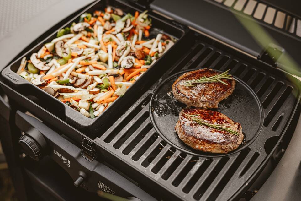 Jeder richtige Grillmeister schwört auf sein Zubehör. Denn mit dem richtigen Zubehör wird auch die Arbeit auf dem heißen Grill zum coolen Vergnügen. Genieße jetzt das Grillaroma von der Guss-Wendeplatte und begeistere deine Gäste mit köstlichen Speisen! HINWEIS: deckt die Hälfte der Grillfläche ab.