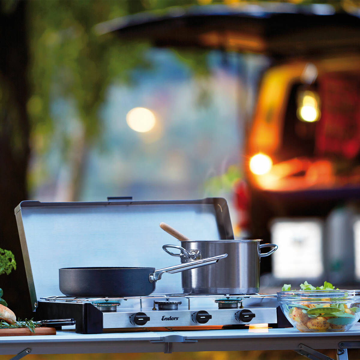 Die BRISBANE-Serie von Enders bietet dir einen Gaskocher, der nicht nur unterwegs eine erstklassige Leistung liefert. Mit den leistungsstarken Brennern je 2,3 Kilowatt regulierst du die Hitze präzise. Erziele ein überzeugendes Kochergebnis mit dem Premium Gaskocher vom Markenhersteller Enders. Die stufenlose Regelung lässt dir die volle Kontrolle über die Hitzeentwicklung, damit du jedes Gericht perfekt zubereiten kannst.