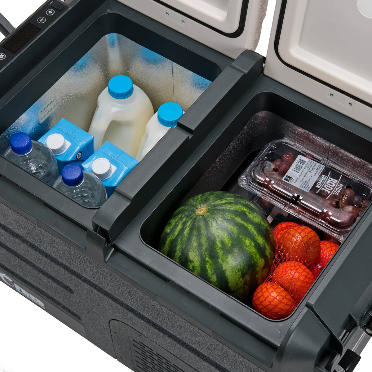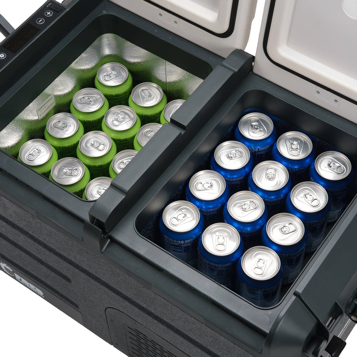 Die EUROM Kühlbox Doppel-Fred besitzt ein Fassungsvermögen von 38 Litern. Sie bietet ausreichend Platz für viele Getränke und Lebensmittel. Das ist nicht nur praktisch für dich, sondern auch für deine Familie oder Freunde, wenn ihr unterwegs seid. Weitere technische Details wie Maße und Gewicht findest du weiter unten in der technischen Tabelle. Gegenüber der normalen Box Namens Fred hast bei diesem Modell zwei getrennt voneinander arbeitende Kühlsysteme. Beide Kühlfächer lassen sich separat temperieren. Das Display zeigt dir die eingestellte Temperatur am Display an.