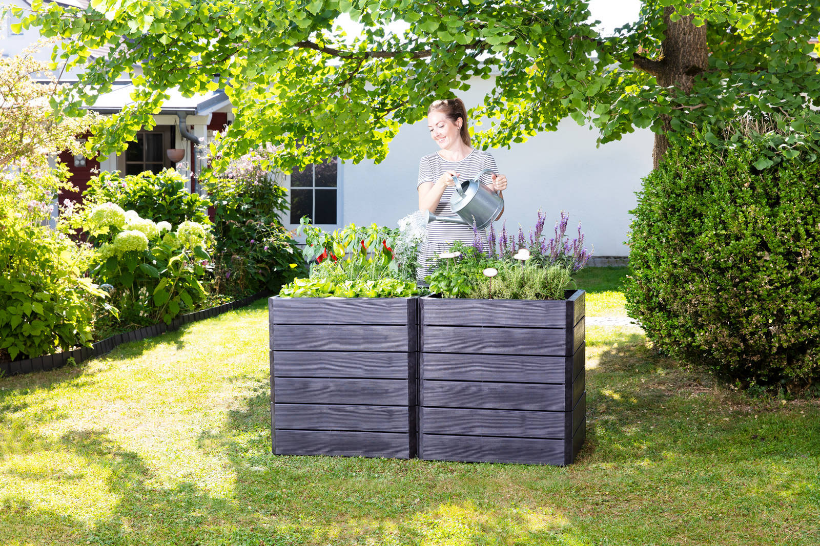 Hochbeete sind voll im Trend und das nicht ohne Grund. Das Garantia Hochbeet Ergo Quadro M ermöglicht dir ein angenehmes Arbeiten auf komfortabler Körperhöhe. Keine Schmerzen im Rücken mehr, wie es bei gewöhnlich-geduckter Gärtnerarbeit üblich ist. Das Garantia Hochbeet Ergo Quadro M besteht aus vier Paneelen mit täuschend echter Holzoptik. Es ist das zweitgrößte Beet der "Ergo Quadro" Serie. Durch das werkzeuglose "Klick-System" ist das Garantia Hochbeet Ergo Quadro M erweiterbar. Die Paneele werden spielend mit den im Lieferumfang enthaltenen Steckverbindern zusammengesetzt. Durch das modulare Baukastenprinzip können beliebig viele Elemente in 25 Zentimeter-Schritten aufeinander gesteckt werden. Einfach & praktisch!