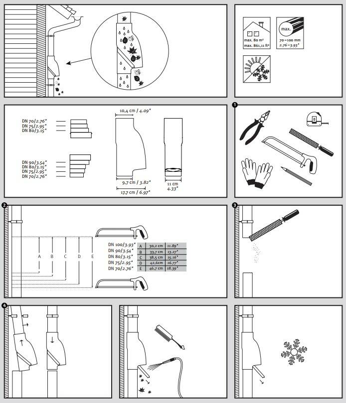 Wenn der Herbst naht und das herabfallende Laub vom angrenzenden Baum die Dachrinne verstopft, ist die Not oft groß. Abhilfe schafft hier der durchdachte sowie kompakte Laubabscheider (Artikel 346013) aus dem Hause Garantia. Der kleine Helfer in grauer, schlichter Ausführung eignet sich für Fallrohre mit einem Durchmesser von 70 bis 100 Millimetern. Dachflächen bis zu 80 Quadratmeter sind für dieses Modell kein Problem. Für die Montage werden lediglich Zange, Maßband, Bleistift, Feile und eine Metallsäge benötigt. Das Prinzip: Der Garantia Laubabscheider schneidet souverän im Inneren anfallendes Laub und Großschmutz ab. Anschließend führt er das zerkleinerte Laub seitlich durch das Gehäuse nach Außen ab. Einfach und effektiv. Ein Verstopfen des Fallrohrs wird somit verhindert. Der Fallrohrfilter von Garantia eignet sich hervorragend bei starkem Laubbefall als Vorfilter. Ebenso ist das Produkt wartungsarm, weil selbstreinigend. Die Siebfläche lässt sich einfach ohne Abbau des Filters an sich entnehmen. Dies ist besonders dann von Vorteil, wenn der Laubabscheider vor der Frostperiode oder der gründlichen Reinigung deaktiviert werden muss.