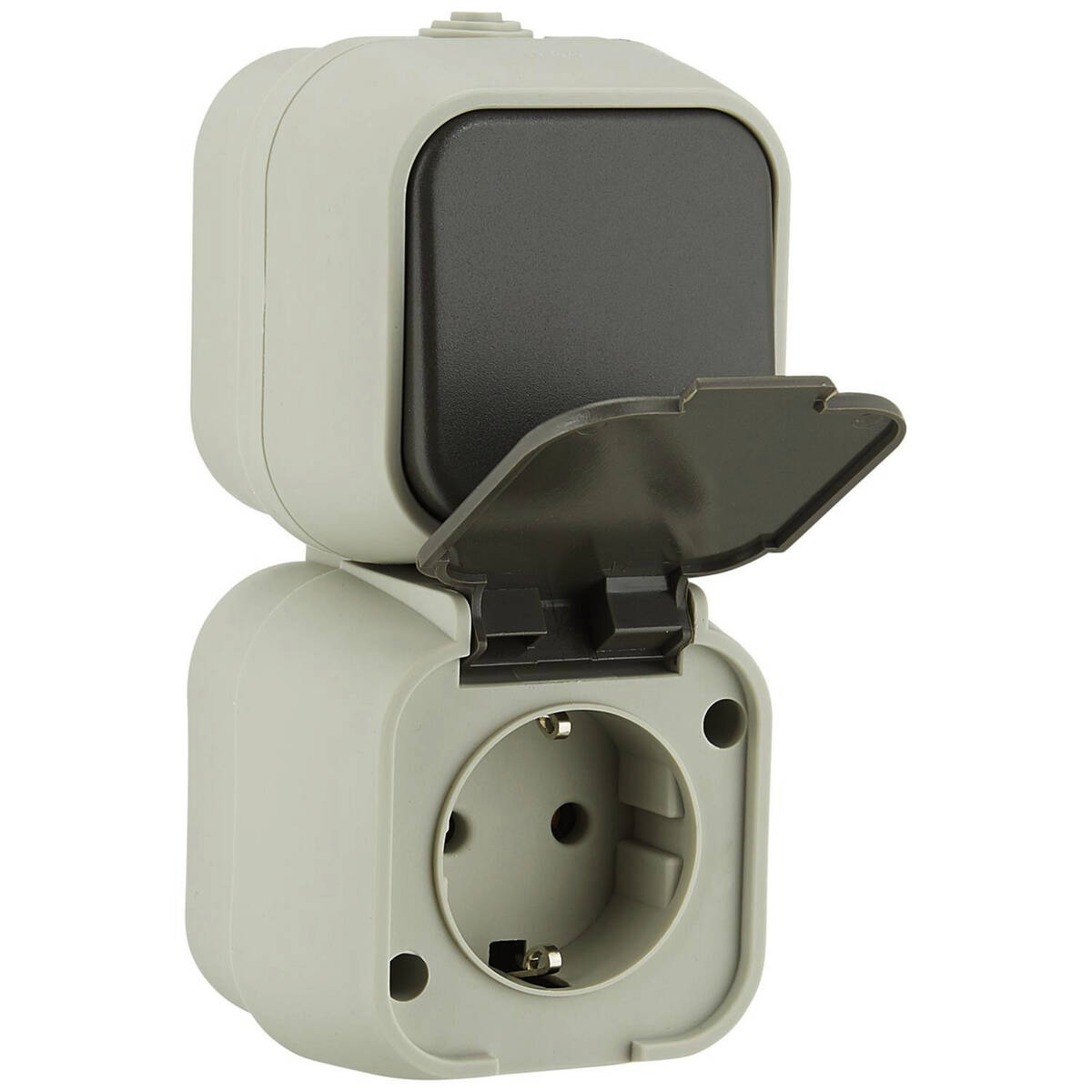 Dieses Set von GO/ON beinhaltet eine Steckdose und Wechselschalter und ist für den Innenbreich zugelassen. Das Set ist IP 44 Spritzwassergeschützt und aus Robustem Kunsstoff.
