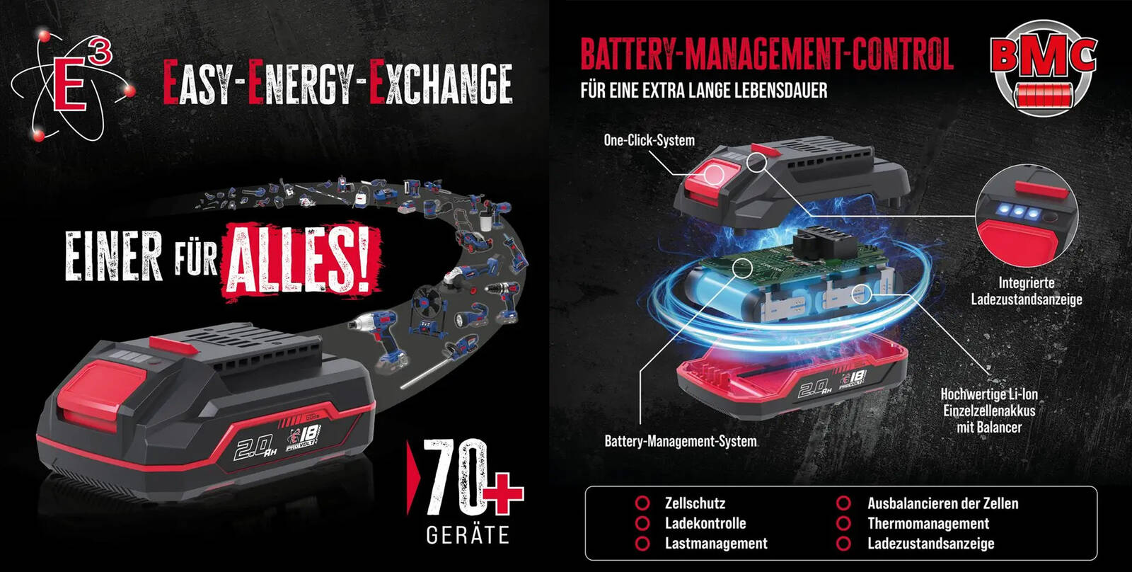 Beim Thema Lieferumfang weiß die Akku-Kehrmaschine ebenfalls zu überzeugen. Mit einem 4,0 Ampere starken Akku und dem passenden Ladegerät der E³ Serie, startest du direkt durch! Hast du bereits Akkus Zuhause – dann nutze die Batterien aus deinem Bestand. Kompatibel sind alle Akkus und Ladegeräte der 18V E³ Serie. So macht Reinigen Spaß, mit Güde und der neuen Akku-Kehrmaschine GKM 18-401-30.
