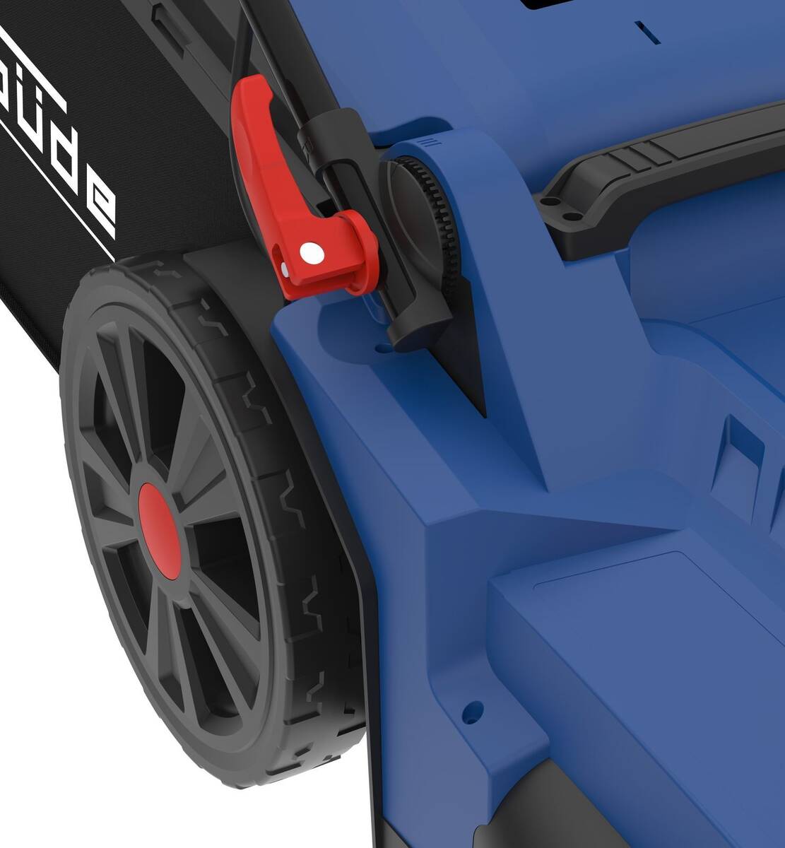 Mit 430 Millimetern Schnittbreite überzeugt Güdes RM 36-402-30.43 beim Punkt Komfort. Du bist schneller mit der Arbeit fertig und kannst deinen Garten genießen. Der Akku-Rasenmäher bietet zudem eine sechsfache Höhenverstellung für mehr Flexibilität. Je nach Rasenwachstum stellst du das Modell zentral an der Seite auf deine Bedürfnisse ein. Dabei lässt sich der Mäher ruckzuck von 25 bis 75 Millimeter in der Höhe verstellen.