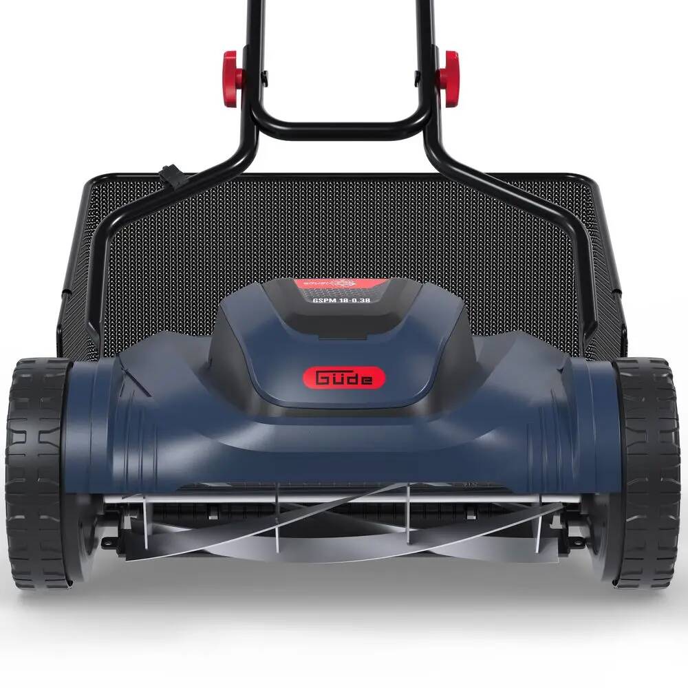 Das Modell GSPM 18-401-30.38 lässt sich sowohl mit als auch ohne Fangkorb nutzen. Für kleinere Rasenflächen sorgt der 35 Liter umfassende Korb für Komfort im Betrieb. Bei großen Mähprojekten oder wenn das Gras sehr hoch ist, empfiehlt sich das Mähen ohne Fangkorb (Mulchmähen). Beim Thema Sicherheit denkt Güde einen Schritt weiter. Hier verfügt das Gartengerät über einen stabilen Fahrbügel inklusive Sicherheitsschalter. Mit rund 12 Kilogramm Eigengewicht lässt sich der Rasenmäher selbst bei längeren Einsätzen gut händeln.