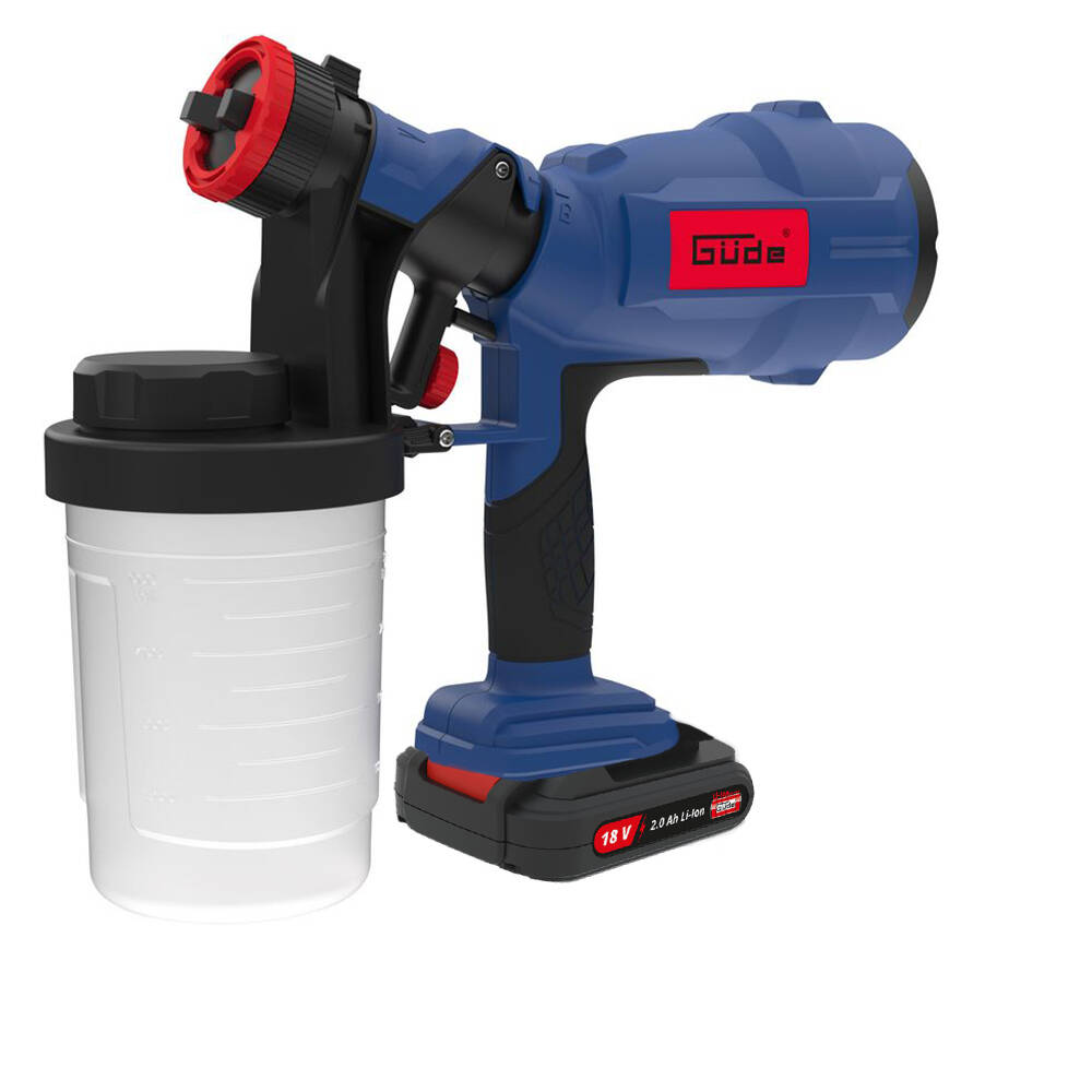 Keine Lust auf selber streichen & lackieren? Kein Problem! Mit der Farbsprühpistole FP-18 sind Sie nicht nur schneller mit der Arbeit fertig. Der Anstrich gelingt auch gleichmäßiger & komfortabeler. Die Farbsprühpistole von Güde gehört zur leistungsstarken 18 Volt E³-Akkugruppe des Herstellers. Ein Schnellladegerät sowie passender 2.0 Ampere Akku sind bereits im Lieferumfang enthalten. Die Güde FP-18 eignet sich für sämtliche handelsübliche Produkte. Ob Lacke, Lasuren oder Farben bis zu einer Viskosität von 60 DIN-sec. Des Weiteren lässt sich die Farbmenge stufenlos einstellen. Ein echter Mehrwert. Mit der Güde Farbsprühpistole FP-18 haben Sie außerdem die Möglichkeit mit unterschiedlichen Sprühbildern zu arbeiten. Drei Möglichkeiten stehen zur Verfügung (Rundstrahl, horizontaler sowie vertikaler Strahl) Diese Eigenschaft macht das Werkzeug von Güde noch flexibler. Nutzen Sie beispielsweise den Rundstrahl für Werkstoffe mit wenig Oberfläche, oder den Horizontal-Strahl für Türblätter und Co. Durch den Softgrip am Griff liegt das Werkzeug stets angenehm in der Hand. Auch längere Arbeiten sind dank der ergonomischen Form möglich. Für noch mehr Individuelles Arbeiten gehören zwei unterschiedliche Düsenköpfe mit zur Ausstattung. Die jeweiligen Durchmesser betragen zwei und 2,5 Millimeter. Für eine bequeme & schnelle Reinigung als auch das Nachfüllen neuer Farben, lässt sich der 900 Milliliter umfassende Farbbehälter einfach abnehmen. Selbiges gilt auch für die Düseneinheit. So müssen Sie sich nicht scheuen das Tool auch für kurze Einsätze zu benutzen. Das beste: Alles ohne lästige Kabel oder Steckdosen. Das Starter-Kit LGAP 18-3020 lässt Sie mit ausdauernder Akkutechnik und Schnellladegerät (Ladung unter 50 Minuten) nicht im Stich.