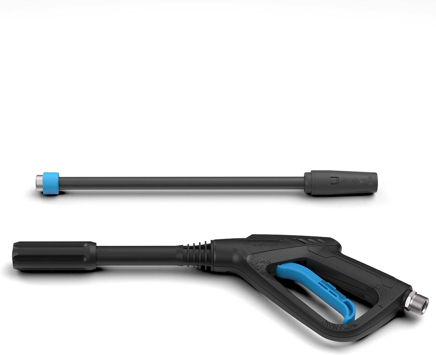 Die großen Räder erhöhen den Transportkomfort deutlich. Zu einem Hochdruckreiniger wie dem Güde GHD 2100-165 gehören in der Regel viele Zubehörteile. Damit nichts verloren geht lassen sich Anschlusskabel und Düsenaufsätze an Halterungen rund um den Hochdruckreiniger anbringen. So hast du alles immer dabei, egal welche Arbeiten ausgeführt werden müssen. Der Lieferumfang umfasst neben dem Hauptgerät mit Vario-Lanze eine Dreckfräslanze, eine Dreiecksbürste und eine rotierende Rundbürste. Sie lassen sich werkzeuglos tauschen und nutzen.