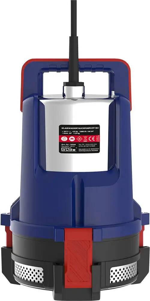 Ebenso überzeugen die äußeren Werte. Die Güde KTP 18-201-23 punktet mit einem robusten Edelstahlmantel. Die Pumpe darf auch mal anecken. In Verbindung mit einem Laufrad aus widerstandsfähigem Noryl, verspricht die Akku-Tauchpumpe eine lange Lebenszeit. Güde integriert einen Tragegriff um die KTP 18-201-23 schnell von einem Einsatzort zum nächsten zu transportieren. Dank acht Meter langem Netzkabel bist du flexibel aufgestellt und musst nicht erst die Kabeltrommel rauskramen. Hier denkt Güde mit. Im Lieferumfang bereits enthalten befindet sich ein Akkupack mit 2,0 Ampere Kapazität. Das passende Schnellladegerät lädt denAkku in rund einer Stunde wieder voll auf. Optional rüste dein Güde Gerät mit einem zweiten 18V E³ Akku auf und spare noch mehr Zeit.