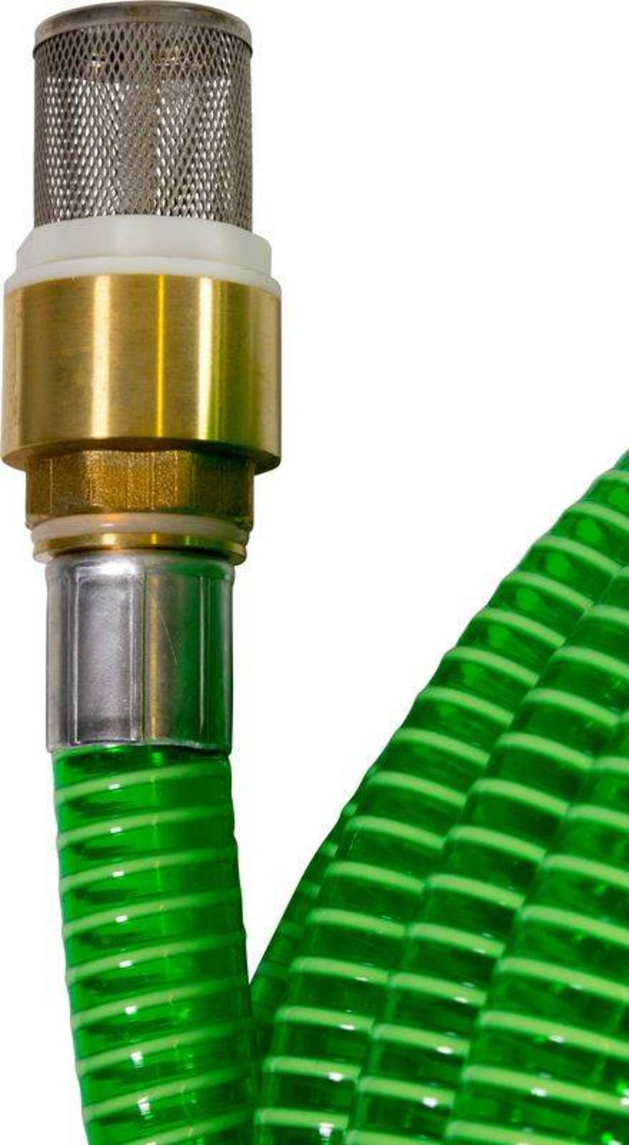 Die Sauggarnitur » KA7P « aus dem Hause Güde überzeugt durch ein hochwertiges Messing-Fußventil mit rostfreiem Edelstahl-Saugkorb. Der Vario-Verschraubungsanschluss eignet sich sowohl für Außen- und Innengewinde. Die Güde Sauggarnitur KA7P ist für maximale Temperaturen von vierzig Grad Celsius ausgelegt. Die Minimaltemperatur von fünf Grad Celsius sollte nicht unterschritten werden. Die Länge der Ansauggarnitur beträgt sieben Meter.
