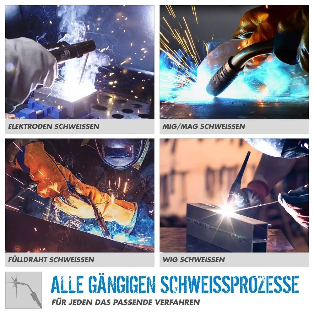 • 4 Funktionen MIG/MAG, Elektroden, Fülldraht und WIG (opt.)