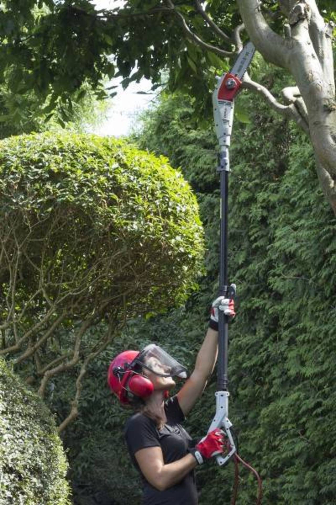 Das Thema Sicherheit & Komfort wird beim IKRA IEAS 750 groß geschrieben! Die Astsäge wird mit einem bequemen breiten Schultergurt geliefert, welcher den Druck von der Schulter nimmt & für mehr Kontrolle beim Sägen sorgt. Die IKRA Astsäge ist mit einem komfortablen Softgrip-Griff ausgestattet. Da der Hochentaster aufgrund seiner Aluminium/Fiberglas-Konstruktion besonders leicht ist, ist ein längeres Arbeiten problemlos möglich ohne das die Arme schwer werden. Der Teleskop-Stiel gewährleistet eine variable Höhenverstellung. Somit entsteht eine beachtliche Arbeitshöhe von bis zu vier Metern. Überdies ist der IKRA Hochentaster IEAS 750 mit einer praktischen Kabelzugentlastung ausgestattet. Wer kennt es nicht ? Man hüpft einen Satz zur Seite oder arbeitet um ein Hindernis herum und plötzlich ist das Kabel des Gartengerätes aus dem Verlängerunskabel oder der Steckdose gerutscht. Dieses Ärgernis gehört nun der Vergangenheit an. Als zusätzlichen Schutz besitzt die IKRA Astsäge einen nützlichen Sicherheitsschalter mit Einschaltsperre. Ein stabiler Schutzköcher ist im Lieferumfang ebenfalls enthalten.