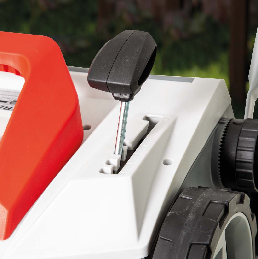 Nach dem vertikutieren, kann die mit dem Vertikutierer IEVL 1838 bearbeitete Rasenfläche gelüftet werden. Die 24 Stahlfederzinken der Lüfterwalze dringen behutsam in die Bodenoberfläche ein und transportieren gleichzeitig neuen Sauerstoff zur Grasnarbe. Der Rasen kann nun wieder "aufatmen". Durch die zentrale Arbeitstiefen-Einstellung von sechs bis zwölf Millimetern können selbst unterschiedliche Rasenwuchshöhen individuell bearbeitet werden. Die Arbeitsbreite des IKRA IEVL 1838 Elektro-Vertikutierers beträgt üppige 38 Zentimeter.