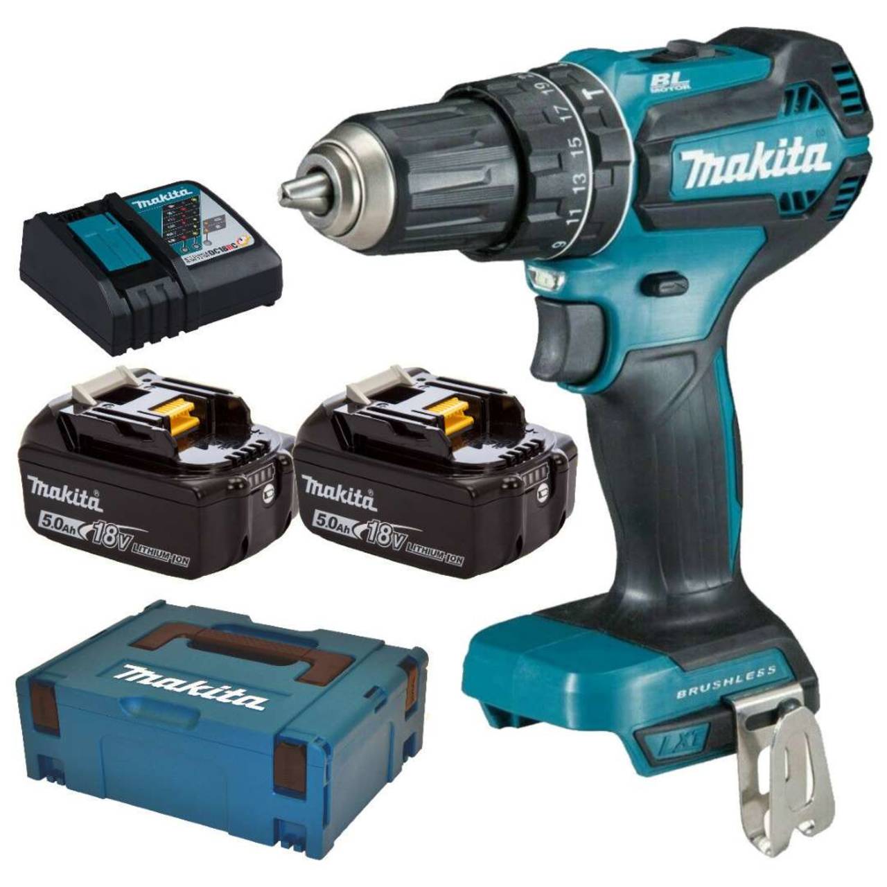Der Makita DHP485RTJ Akku-Schlagbohrschrauber ist der ideale Begleiter bei Ihren Arbeiten. Ausgezeichnet durch seinen starken 18 Volt bürstenlosen Motor und dem zweigang Vollmetal-Planetengeriebe, ist er das perfekte Gerät für die etwas anspruchsvolleren Arbeiten. Durch den bürstenlosen Motor besitzt der Makita Akku-Schlagbohrschrauber mehr Ausdauer und eine höhere Lebensdauer im Vergleich zu Maschinen mit normalen Bürstenmotoren. Der Makita Akku-Schlagbohrschrauber besitzt eine Kraft von bis zu fünfzig Newtonmeter. Somit lassen sich ganz leicht Löcher in die Wand bohren. Egal ob Holz oder Beton, mit diesem Akku-Schlagbohrer von Makita wird das Arbeiten zum Kinderspiel.