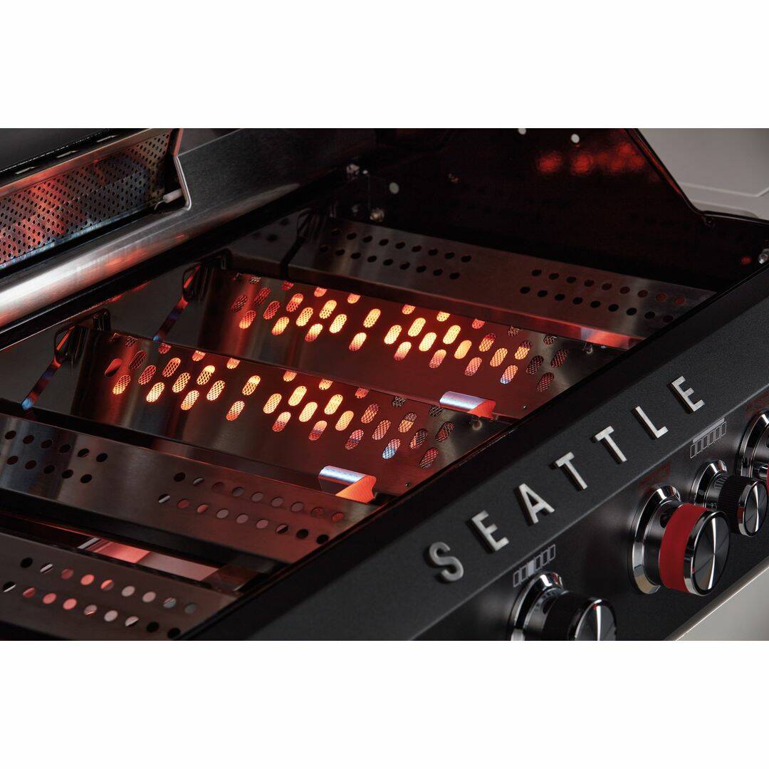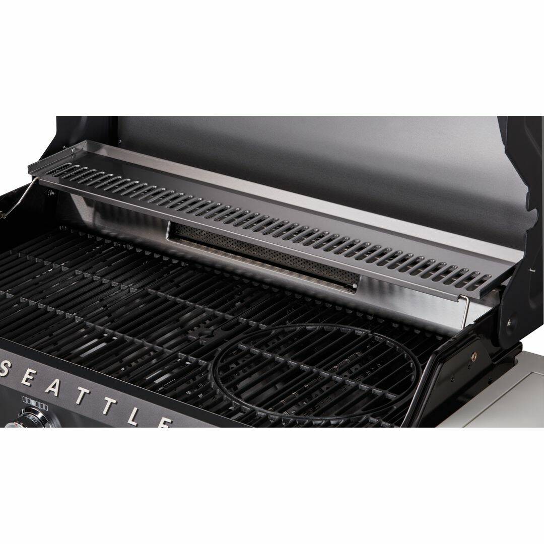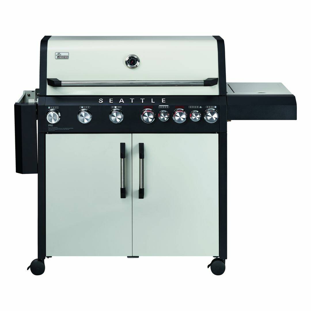 Die Bedienung dieses Grills ist ein Kinderspiel. Dank der im Regulierknopf integrierten Piezozündung startest du den Seattle 6 Pro im Handumdrehen. Es ermöglicht dir ein schnelles und unkompliziertes Zünden des Grills. Somit startest du direkt mit deiner Grillsession durch. Große 11 Kilogramm-Gasflaschen lassen sich bequem im Unterschrank verstauen. Das ist praktisch und sorgt parallel für ein aufgeräumtes Erscheinungsbild. Die doppelwandige Grillhaube mit Thermometer ermöglicht dir eine präzise Kontrolle der Grilltemperatur. Damit deine Gerichte immer perfekt gelingen, ganz gleich, ob du saftige Steaks, zarte Hähnchenbrust oder gegrilltes Gemüse zubereitest. Mit dem Seattle 6 Pro Gasgrill von Mr. Gardener erzielst du immer erstklassige Ergebnisse.