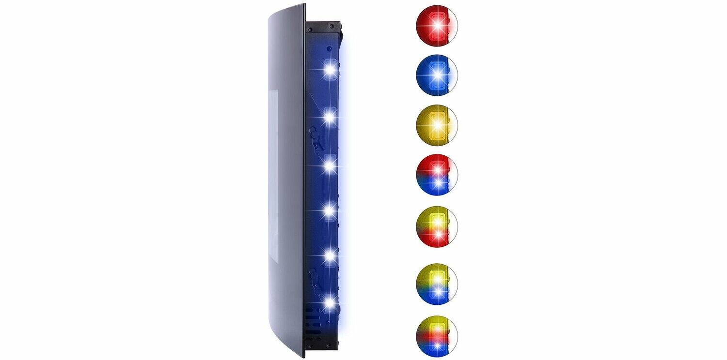 Kuscheliges Ambiente gepaart mit Sicherheit und Komfort. An dieser Stelle setzt der Elektrokamin Davos (Zürich 2.0) von El Fuego an. Genießen Sie einen hochmodernen Gluteffekt durch LED-Beleuchtung. Die Flammen lassen sich nach Herzenslust via Fernbedienung dimmen. Schaffen Sie ihre Wohlfühloase in der kalten Jahreszeit. Egal ob ungemütlicher Herbsttag oder klirrend kalte Winterzeit. Der Elektrokamin Davos von El Fuego besitzt eine konvex-rund gebogene Sicherheitsglasscheibe. Ein echter Hingucker in vielen Wohnräumen. Die Maße des Davos zeigen sich kompakt. Sie betragen laut El Fuego 89 Zentimeter in der Länge sowie 48 Zentimeter in der Breite. Die Tiefe beträgt lediglich 13,5 Zentimeter. Das Modell eignet sich für die Wandmontage. Zwei Heizstufen lassen sich parallel zum Gluteffekt beischalten. Wählen sie via Fernbedienung oder am Elektrokamin selbst zwischen 1000 Watt und 2000 Watt. Ein integrierter Überhitzungsschutz sorgt für zusätzliche Sicherheit im Betrieb. Bei Überlast schaltet der E-Kamin automatisch ab. Gegenüber klassischen Kaminöfen schließen Sie den El Fuego Davos (Zürich 2.0) einfach über die Haussteckdose an. Kein Installateur oder komplizierte Schornsteinfeger-Abnahme von Nöten. Darüber hinaus bietet das Modell ein weiteres Highlight. Per Knopfdruck aktiviert der Anwender das seitliche LED-Licht. So erweitert der Kamin sein Licht-Spektrum und lässt die komplette Wand erstrahlen. Tauchen Sie ein in ein wohlig-warmes Gelb, über ein beruhigendes Tiefblau oder ein wärmenden Rotton. Weitere Merkmale sind der mehrfach einstellbarer Timer sowie ein ins Sicherheitsglas eingelassenes Display. Letzteres zeigt nützliche Informationen über die aktuellen Heiz- und Timer-Einstellungen an. Lassen Sie sich verwöhnen. Mit El Fuego.