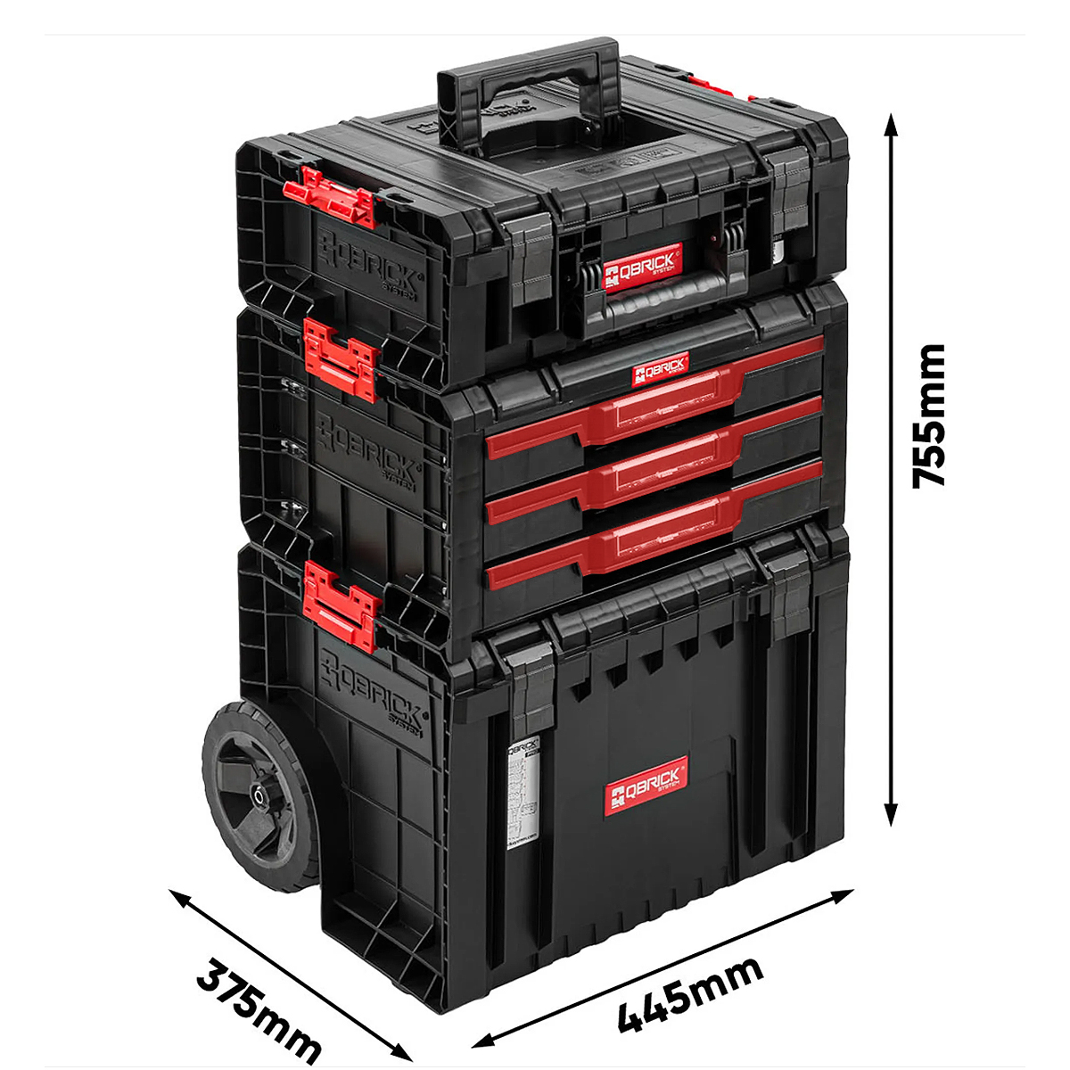 Der QBrick Werstattwagen Pro Edition 3er Set bietet nicht nur hochwertige Reifen für mühelose Mobilität, sondern auch ein praktisches 3er Schubladenset mit Klickverschluss. Der großzügige Stauraum unten ermöglicht die sichere Aufbewahrung von Werkzeugen. Zusätzlich punktet das Set mit einem handlichen Zusatzkoffer für maximale Flexibilität und Organisation in der Werkstatt.