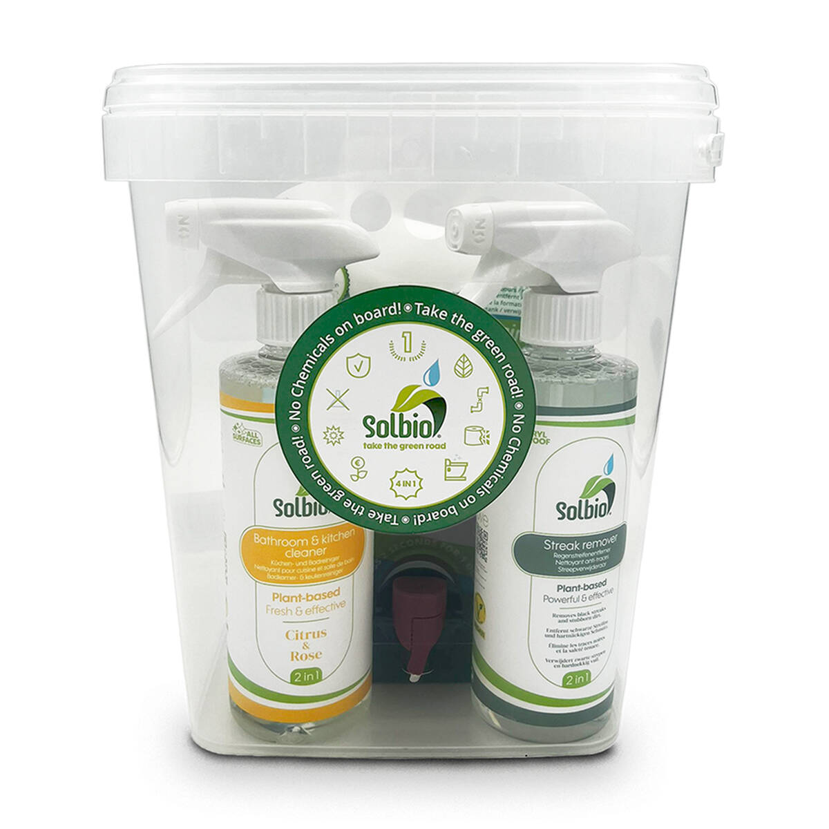 Mit dem großen 10 Liter Eimer hast du deine Reiniger im Blick und alles an einem Ort sicher verwahrt, perfekt zu mitnehmen für unterwegs!