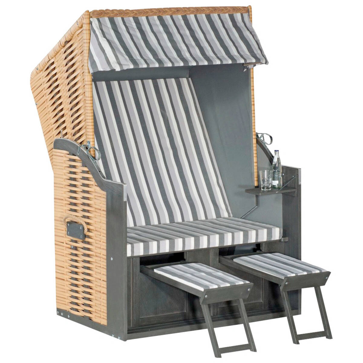 Der Strandkorb Rustikal 15 Z von Sunny Smart verleiht deinem Garten, Balkon oder deiner Terrasse nordisches Flair. Er lädt zu entspannten Stunden im Freien ein. Das Modell im Halblieger‑Format bringt mit den Maßen 120 × 160 × 80 cm ausreichend Platz für zwei Personen mit. Das Modell wirkt dank naturfarbener Streifenoptik zeitgemäß und gemütlich.